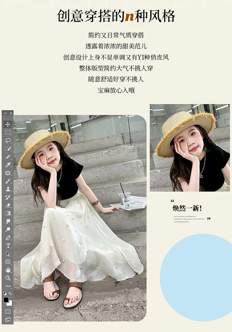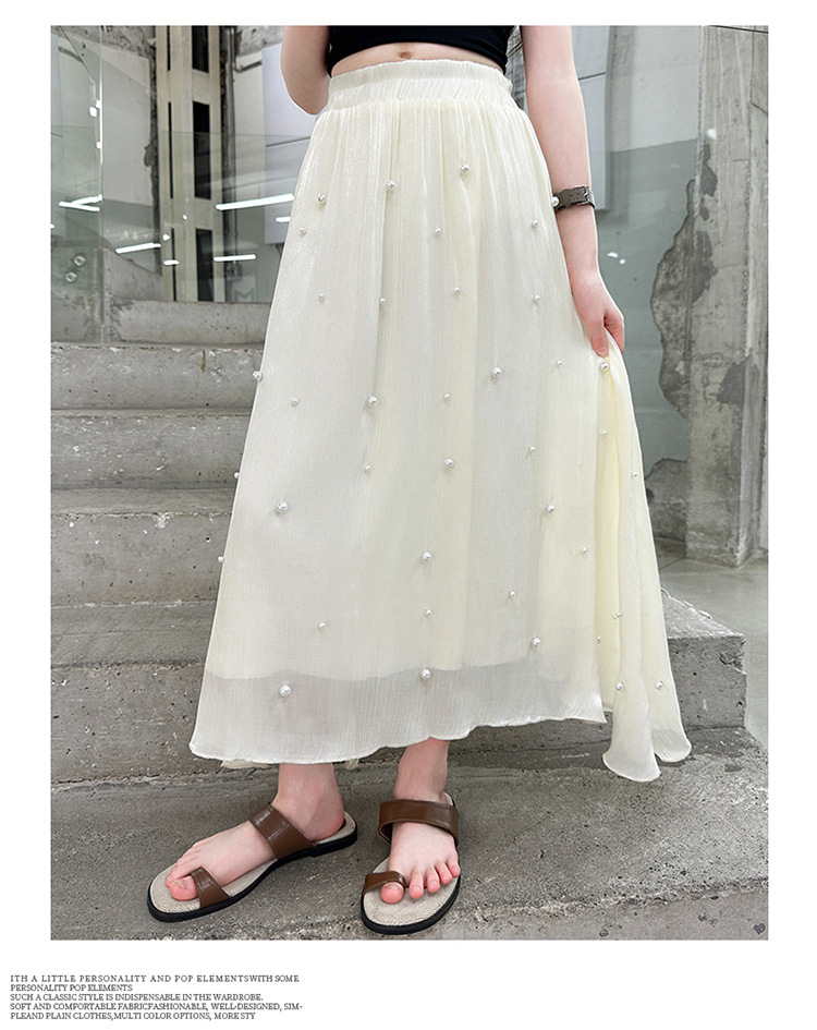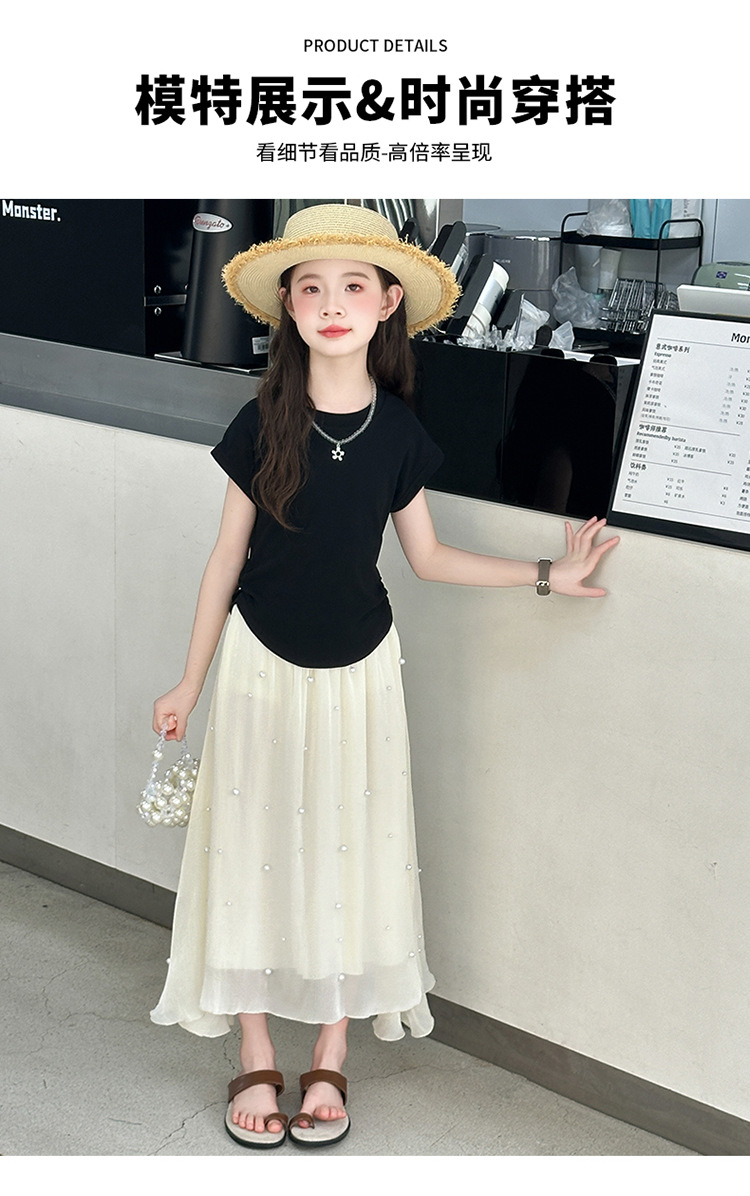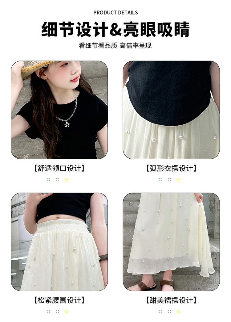 여자 프릴 구슬 스커트 여름 드레스 2025 새로운 스타일 어린 소녀 유행 높은 허리 중간 길이 슈퍼 요정 스커트스토어 가기