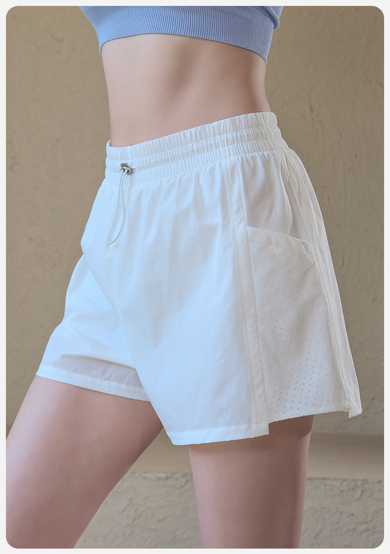 가짜 투피스 요가 반바지 여성의 느슨한 경량 통기성 스포츠 피트니스 바지 안티 라이트 필라테스 훈련 바지 여름