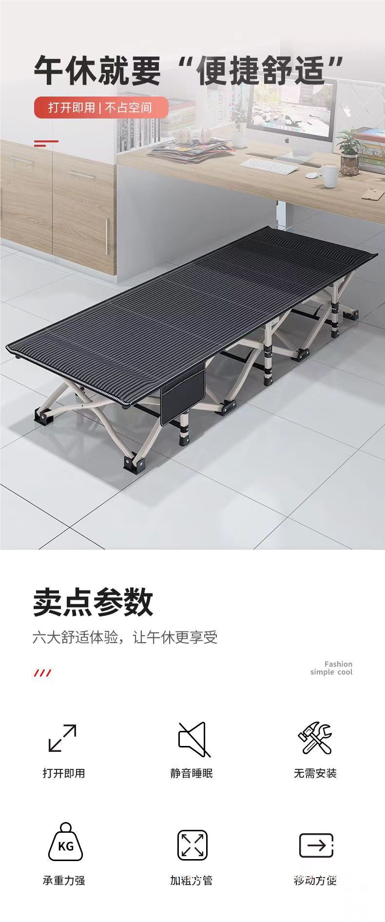 70cm 점심 시간 접이식 침대 사무실 낮잠 간단한 휴식 싱글 침대 캠핑 안락 의자 야외 캠프 침대스토어 가기