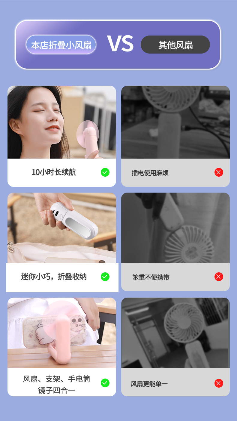 국경 간 큰 F13 미니 팬 USB 핸드 헬드 팬 충전 보물 휴대 전화 브래킷 거울 손전등 5 개