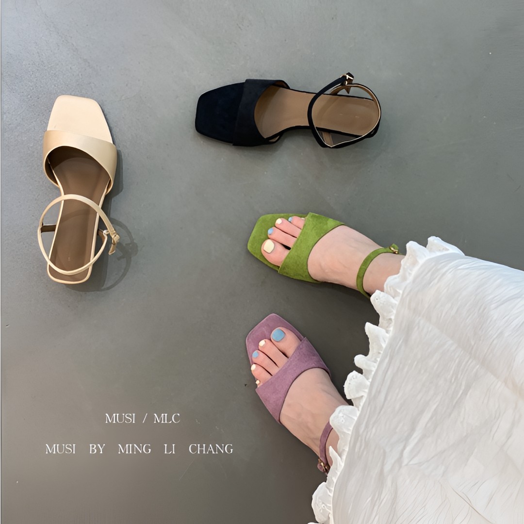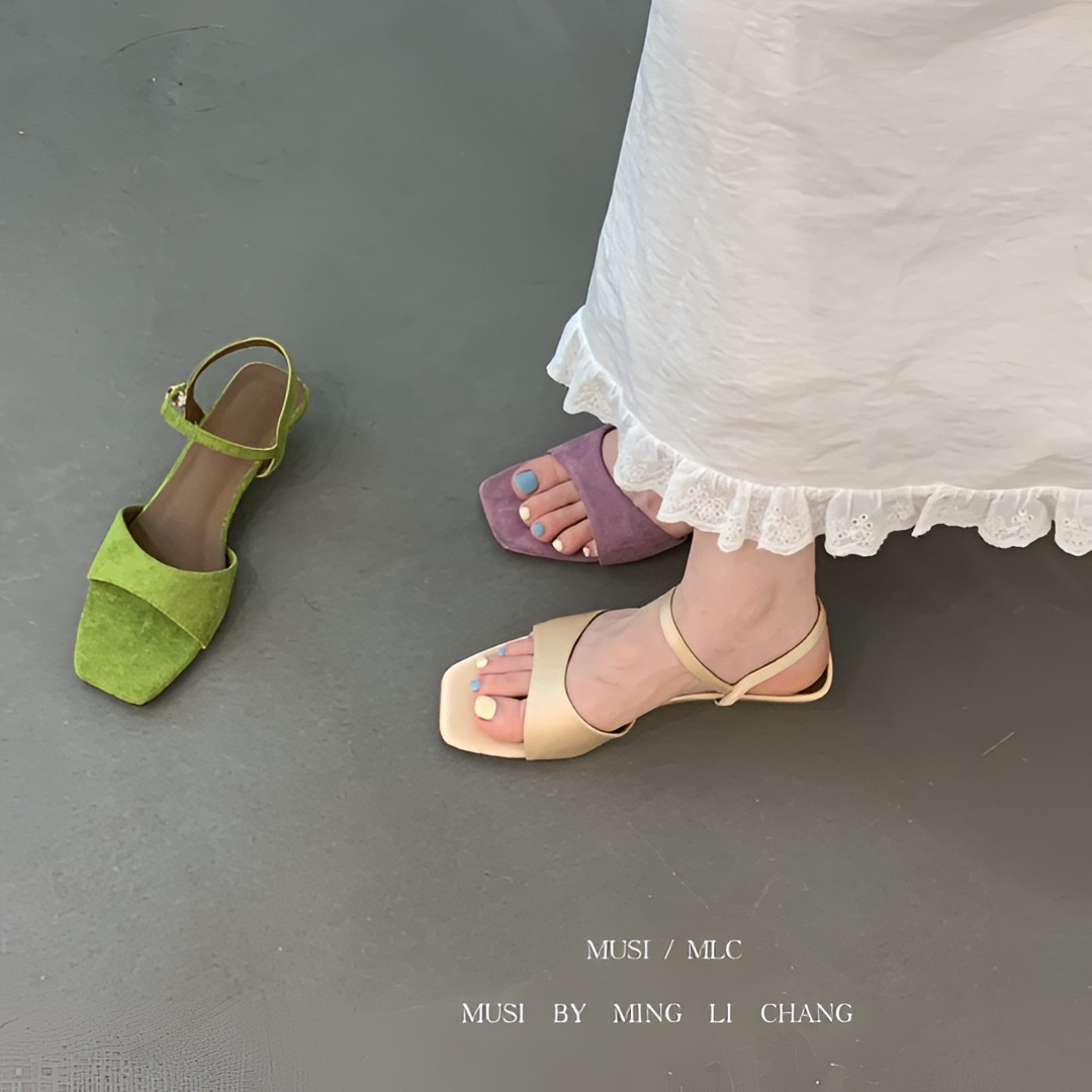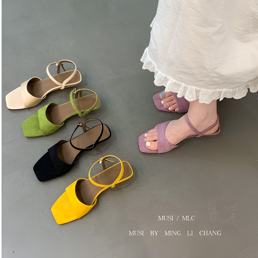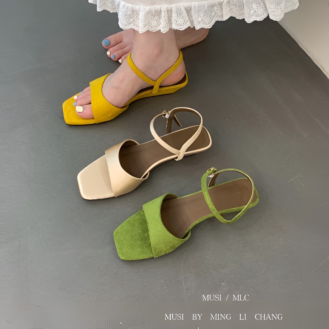 Mengmengjia 721-3 한국식 오픈 토 스퀘어 토 웨지 슬리퍼, 여성용 여름 다용도 샌들