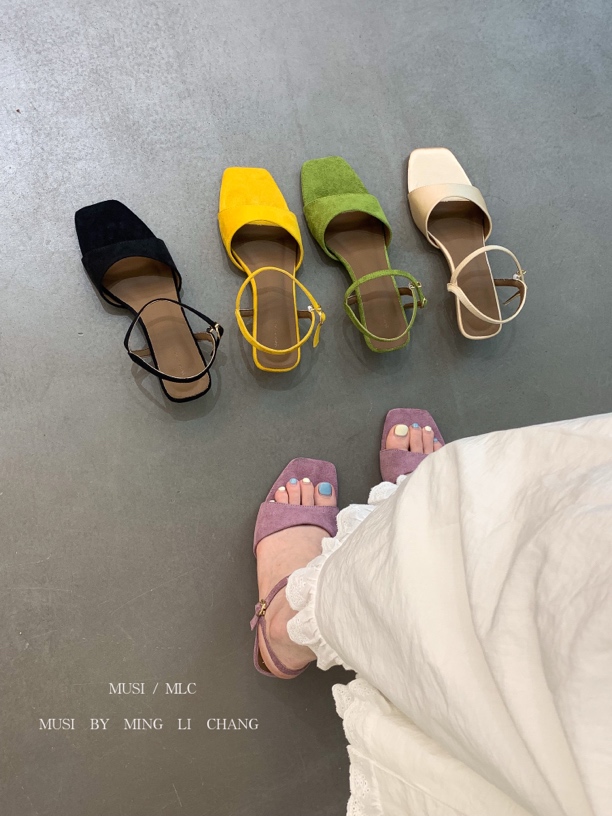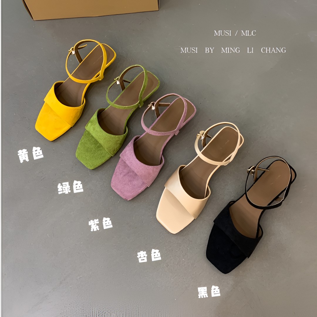 Mengmengjia 721-3 한국식 오픈 토 스퀘어 토 웨지 슬리퍼, 여성용 여름 다용도 샌들스토어 가기