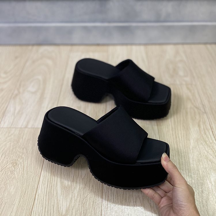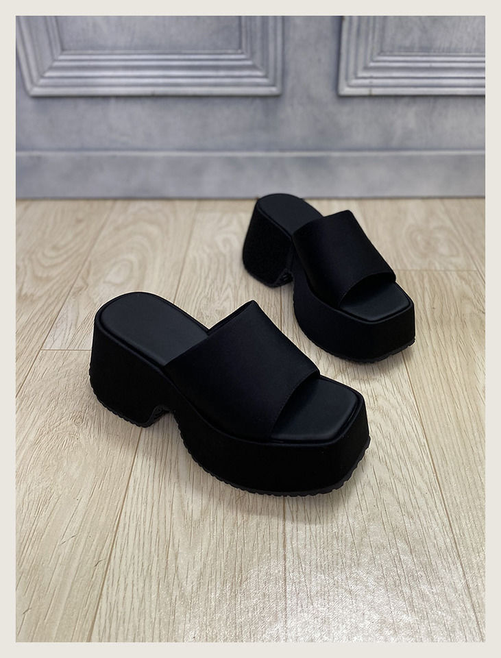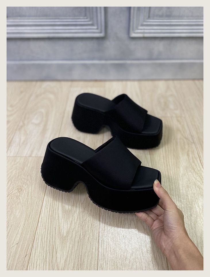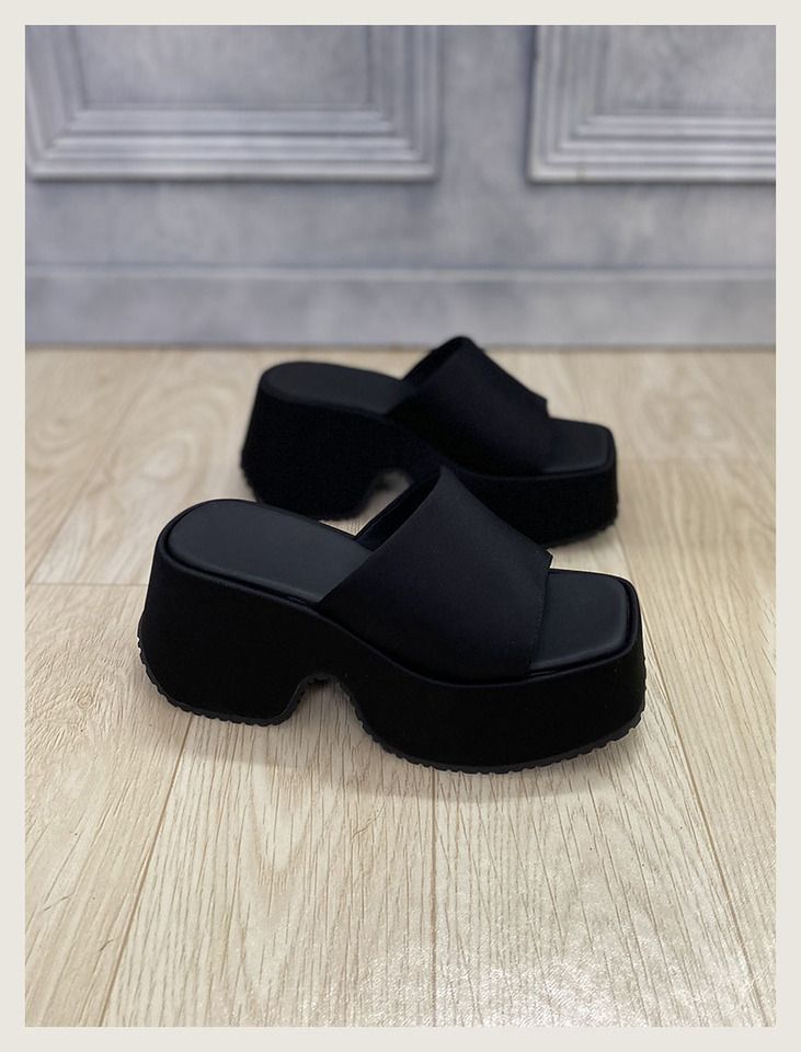 여성을 위한 미니멀리스트 두꺼운 밑창 샌들 2025 여름 패션 아우터웨어 휴가 슬리퍼 작은 사람들을 위한 키가 큰 캐주얼 슬리퍼 트렌디
