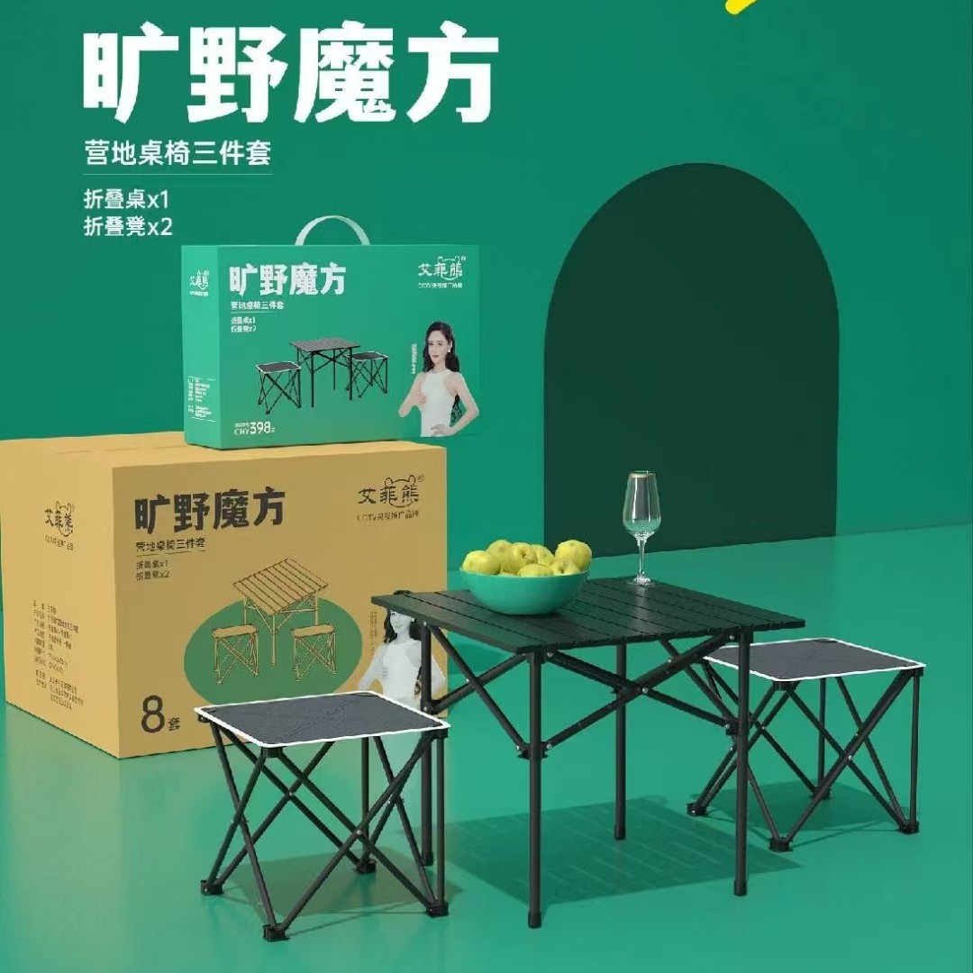 Effie Bear Wilderness 루빅스 큐브 캠프 테이블과 의자 3피스 여행 캠핑 경량 피크닉 테이블 야시장 스톨 바베큐