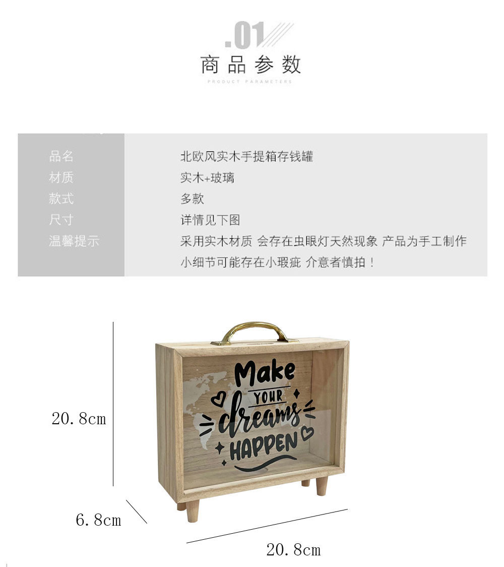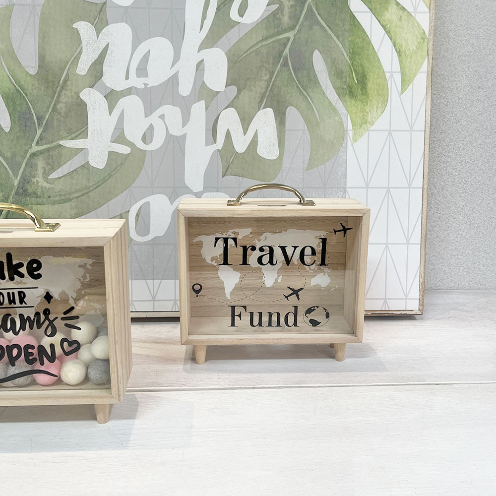 휴대용 나무 저금통, 여행용 저금통, 휴가용 저금통, 데스크탑 장식 나무 상자스토어 가기