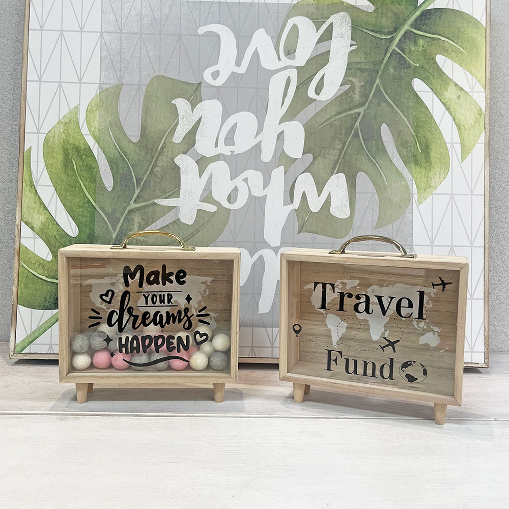 휴대용 나무 저금통, 여행용 저금통, 휴가용 저금통, 데스크탑 장식 나무 상자