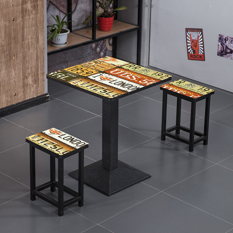 • 오래된 번호판, 테이블 1개, 스툴 4개
