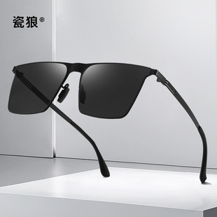新款无螺丝太阳镜超轻方形墨镜男黑色驾驶镜不锈钢PC高清太阳镜