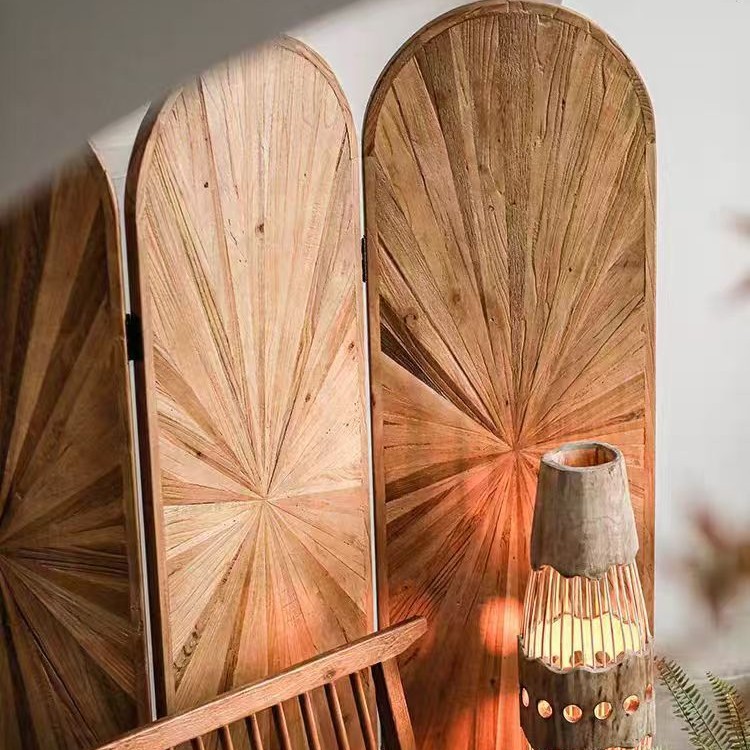 가정용 거실 및 침실용 오래된 느릅나무 입구 파티션 스크린, 접이식 모바일 스크린