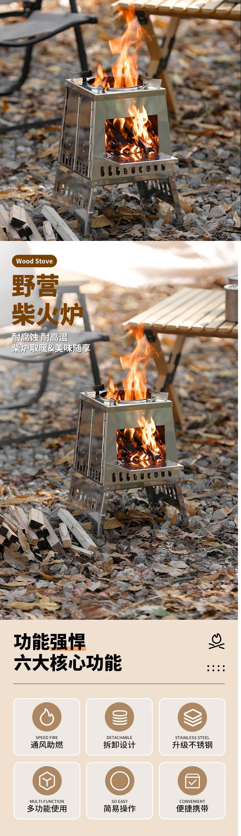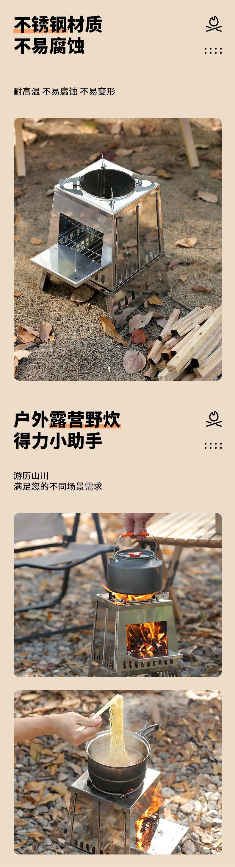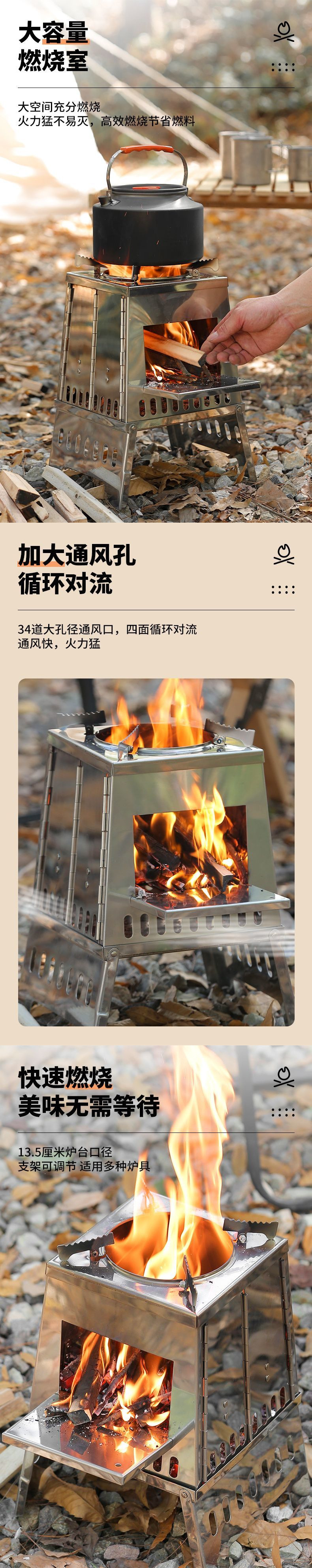• 야외 캠핑 피크닉 스테인레스 스틸 장작 피크닉 스토브 장작 난로