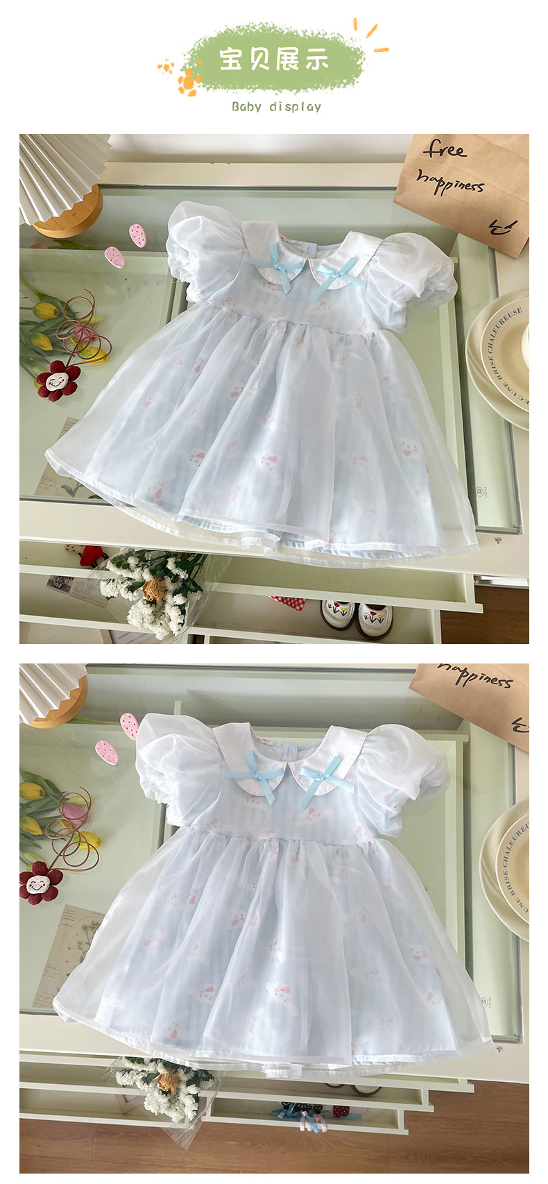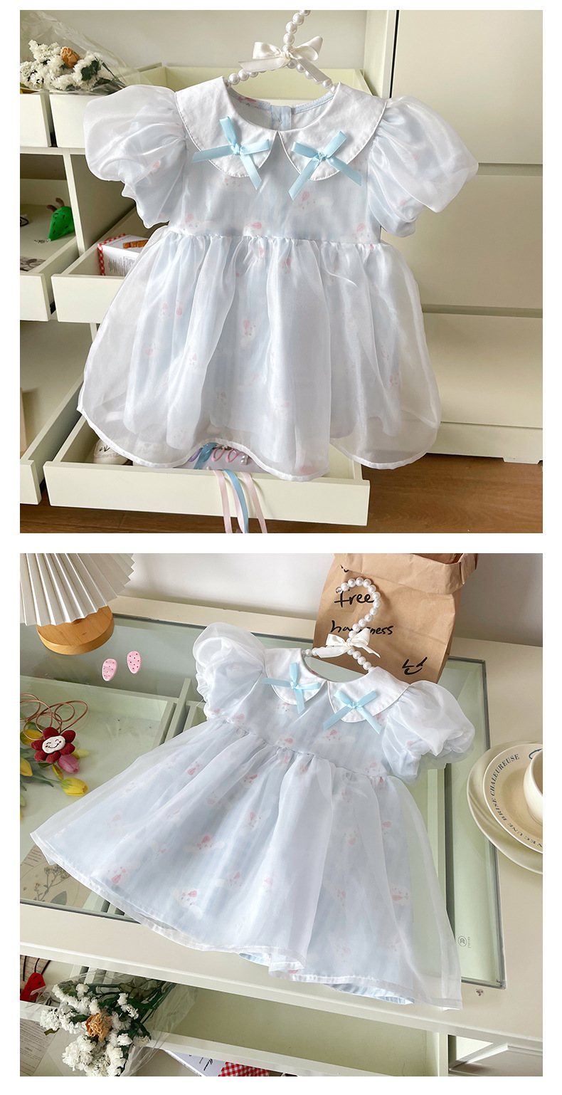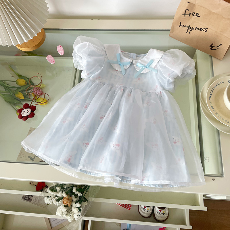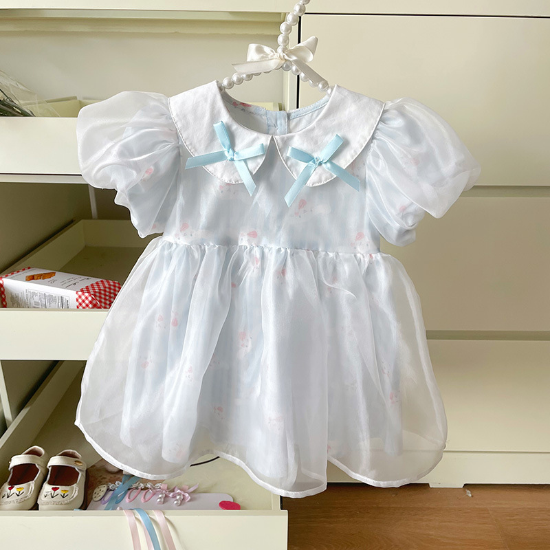 [재고 있음] 여아 드레스 2025 여름 신작 인터넷 연예인 어린이 스타일 한국 스타일 달콤한 퍼프 슬리브 공주스토어 가기