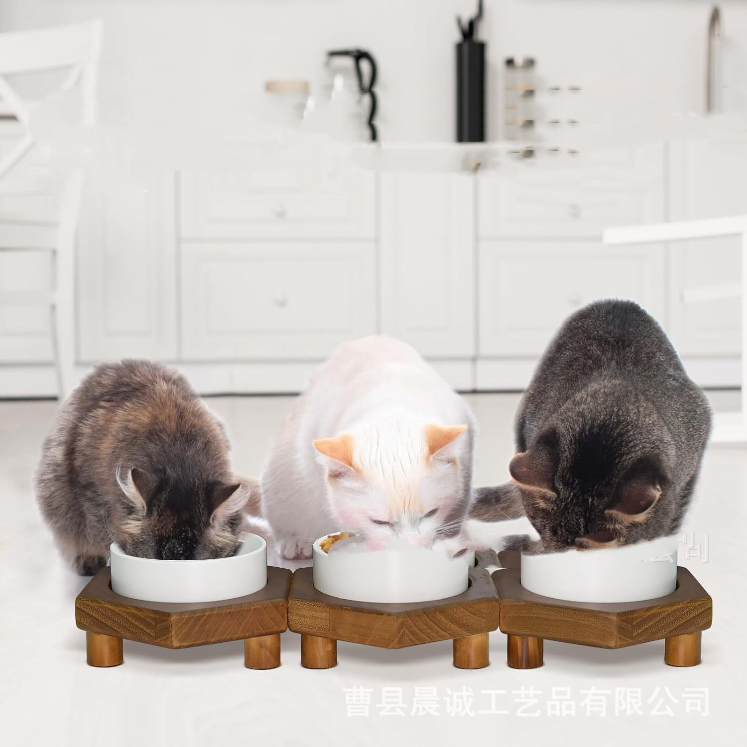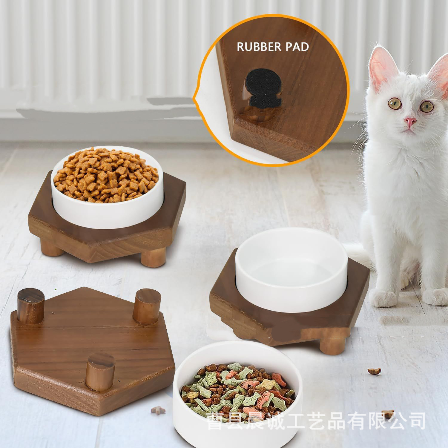 나무 고양이 그릇 랙, 애완 동물 강화 먹이 그릇, 중소형 개 그릇 랙, 가정용 조절 가능한 고양이 피더 식탁스토어 가기