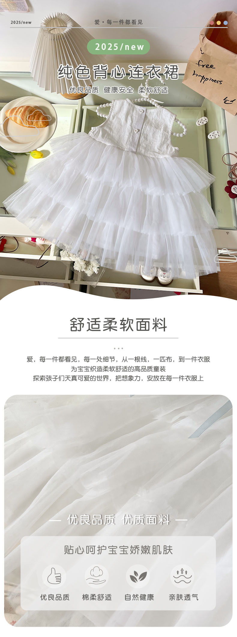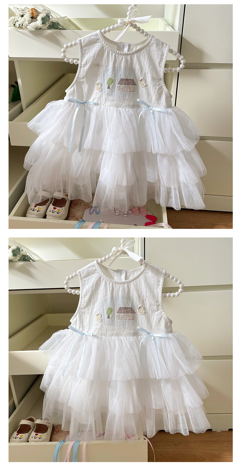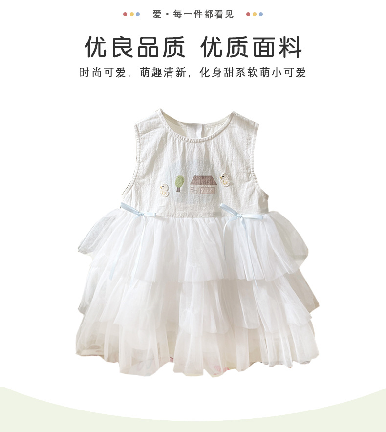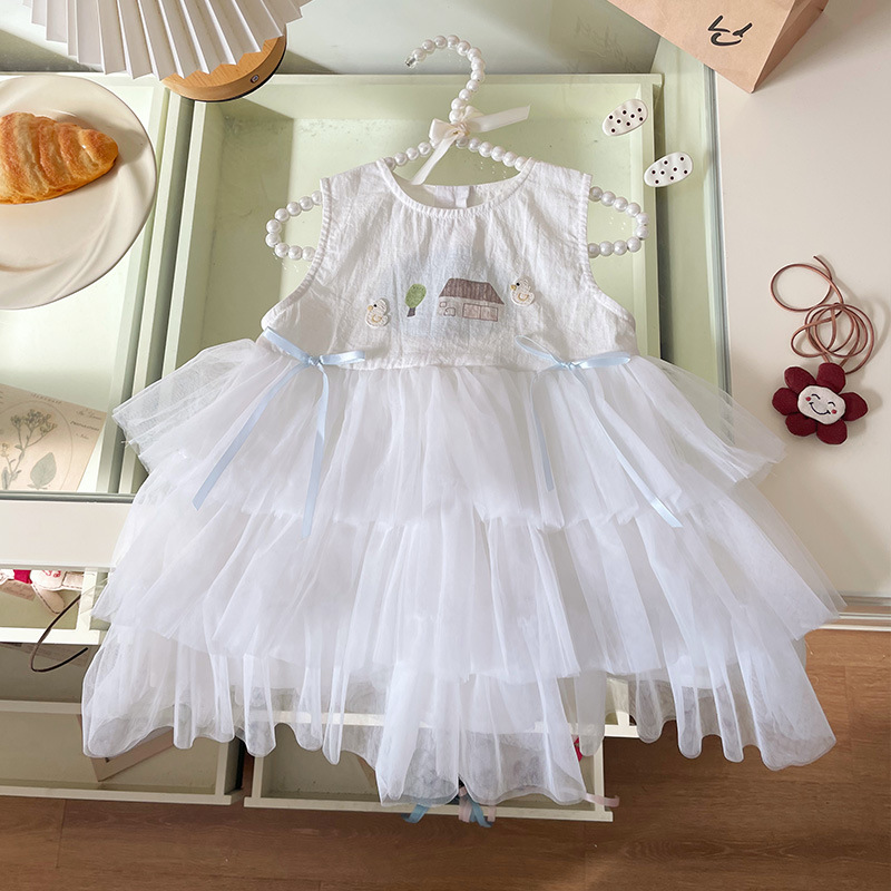 [재고 있음] 여아 드레스 2025 여름 새로운 스타일 베이비 만화 메쉬 공주 드레스 케이크 드레스