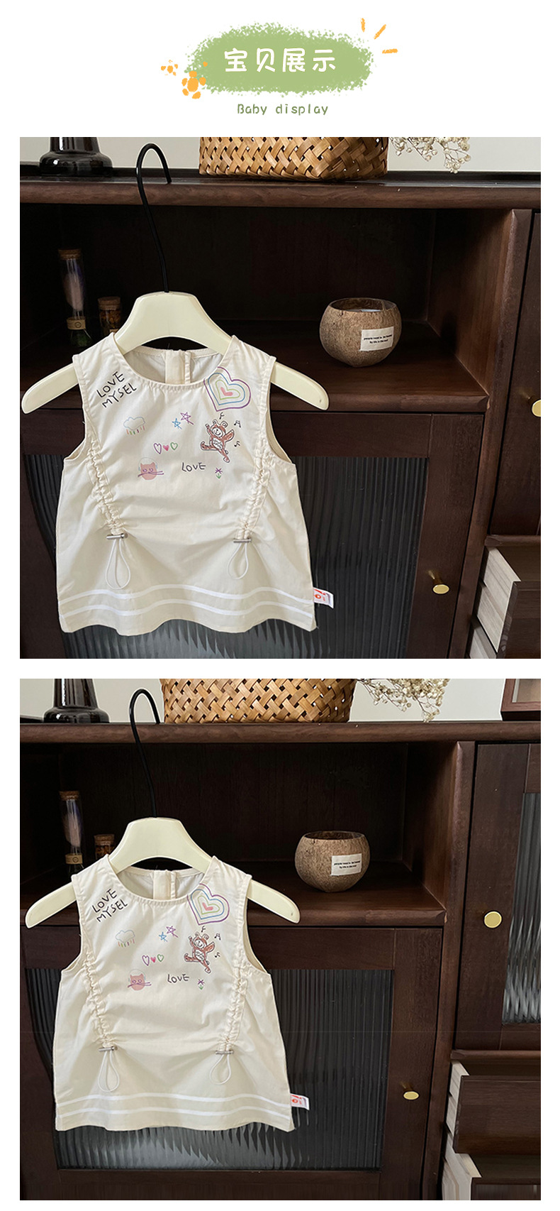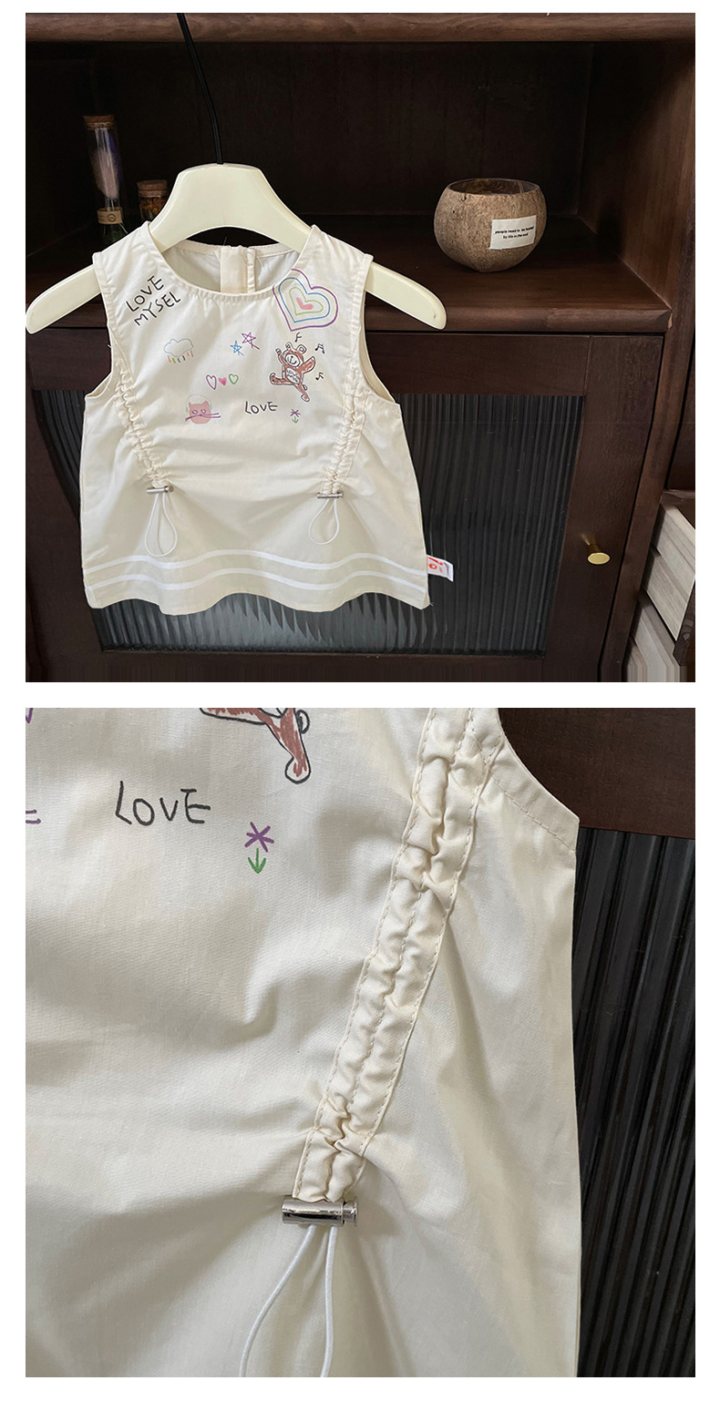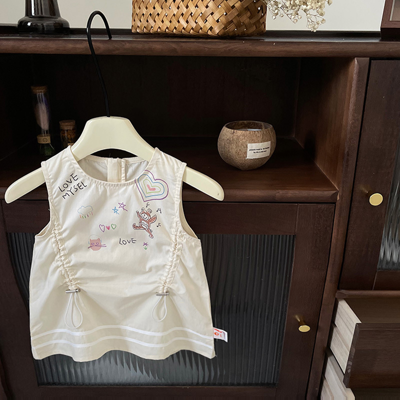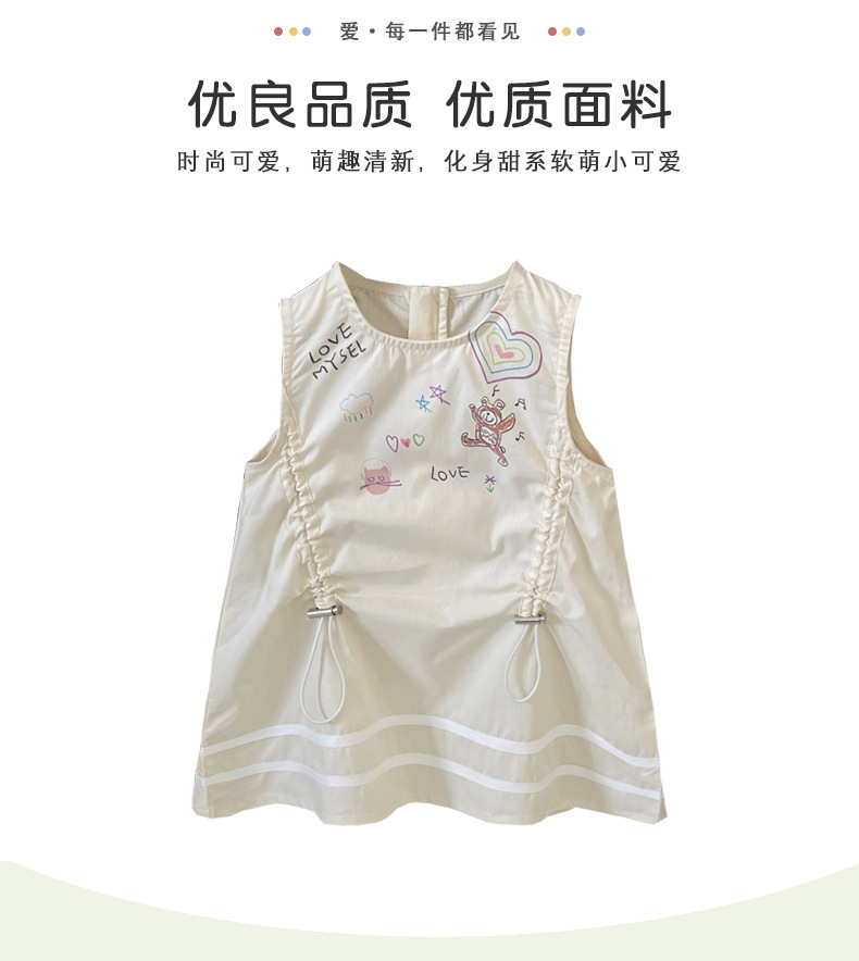 [재고 있음] 여아 드레스 2025 여름 신작 한국어 버전 만화 문자 졸라매는 끈 패셔너블한 조끼 드레스스토어 가기