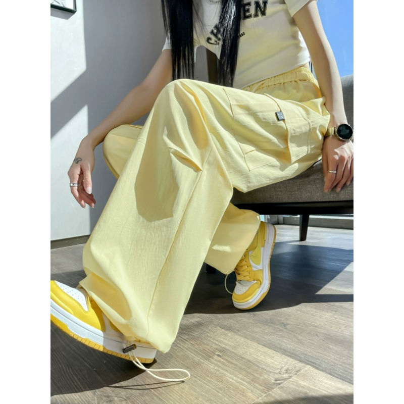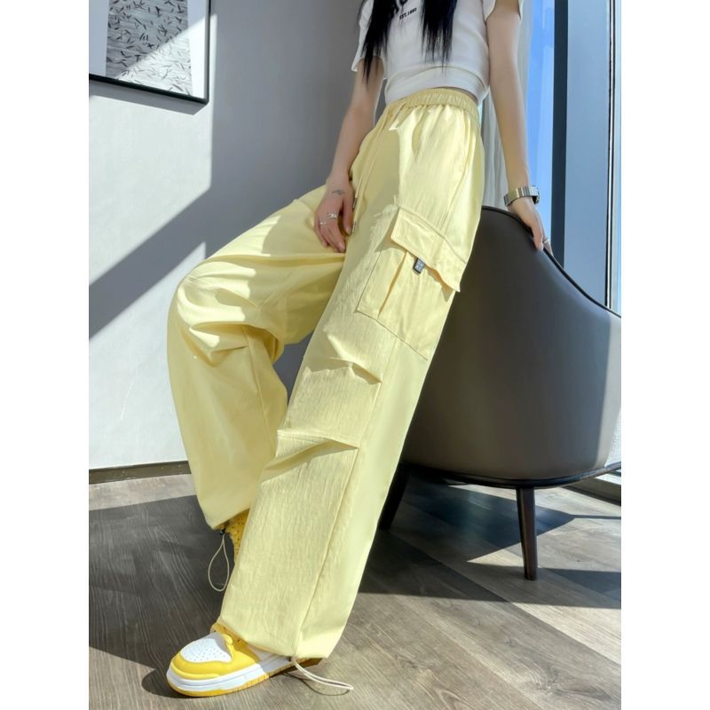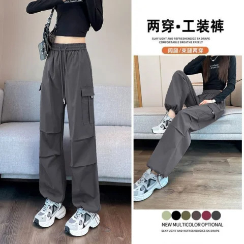 여름에 작은 여성을 위한 얇은 미국식 작업복, 하이킹 바지, 캐주얼 루즈한 와이드 레그 속건 스포츠 바지