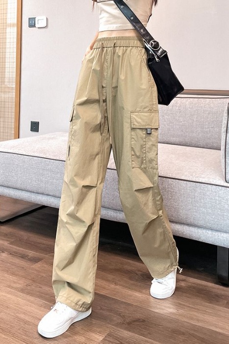 여름에 작은 여성을 위한 얇은 미국식 작업복, 하이킹 바지, 캐주얼 루즈한 와이드 레그 속건 스포츠 바지스토어 가기