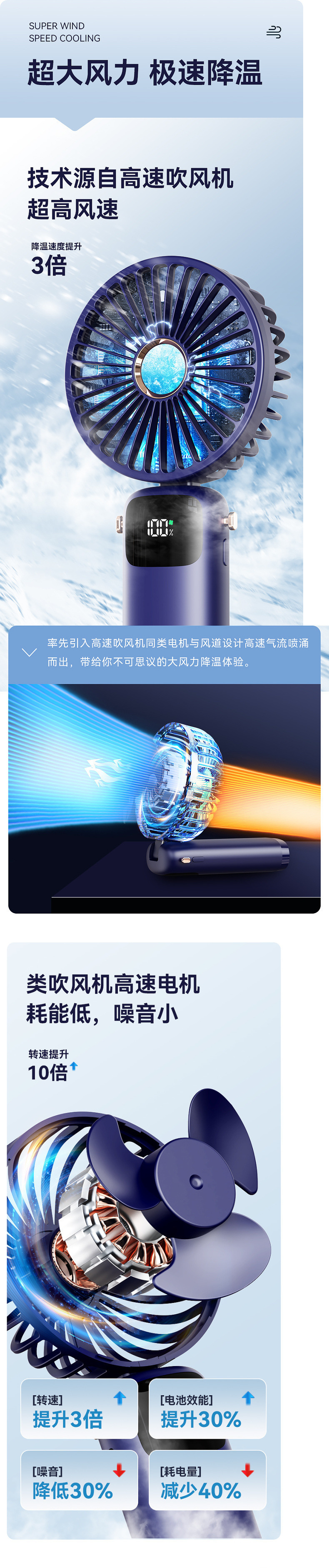 • 플래그십 버전: [10H 지속 가능] 6단 강풍 + 전력 디지털 표시