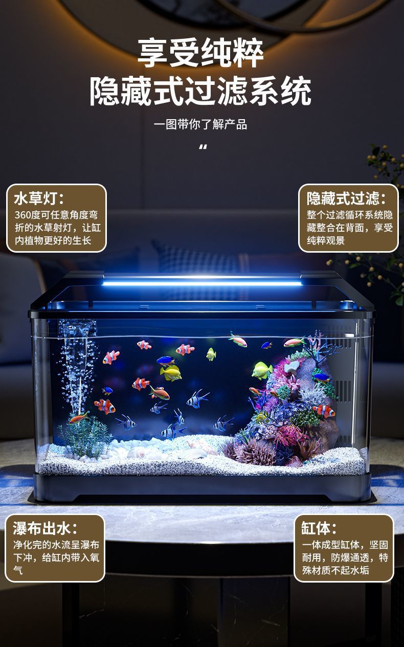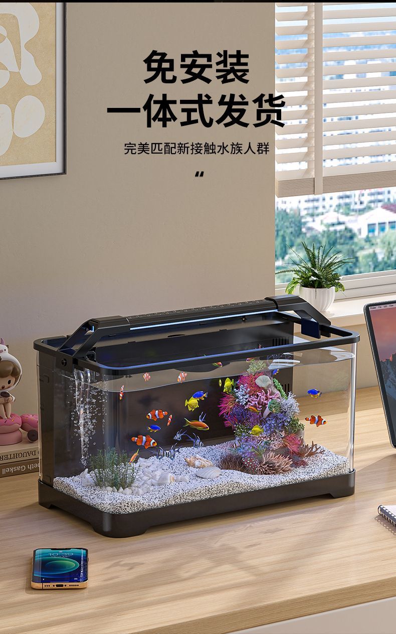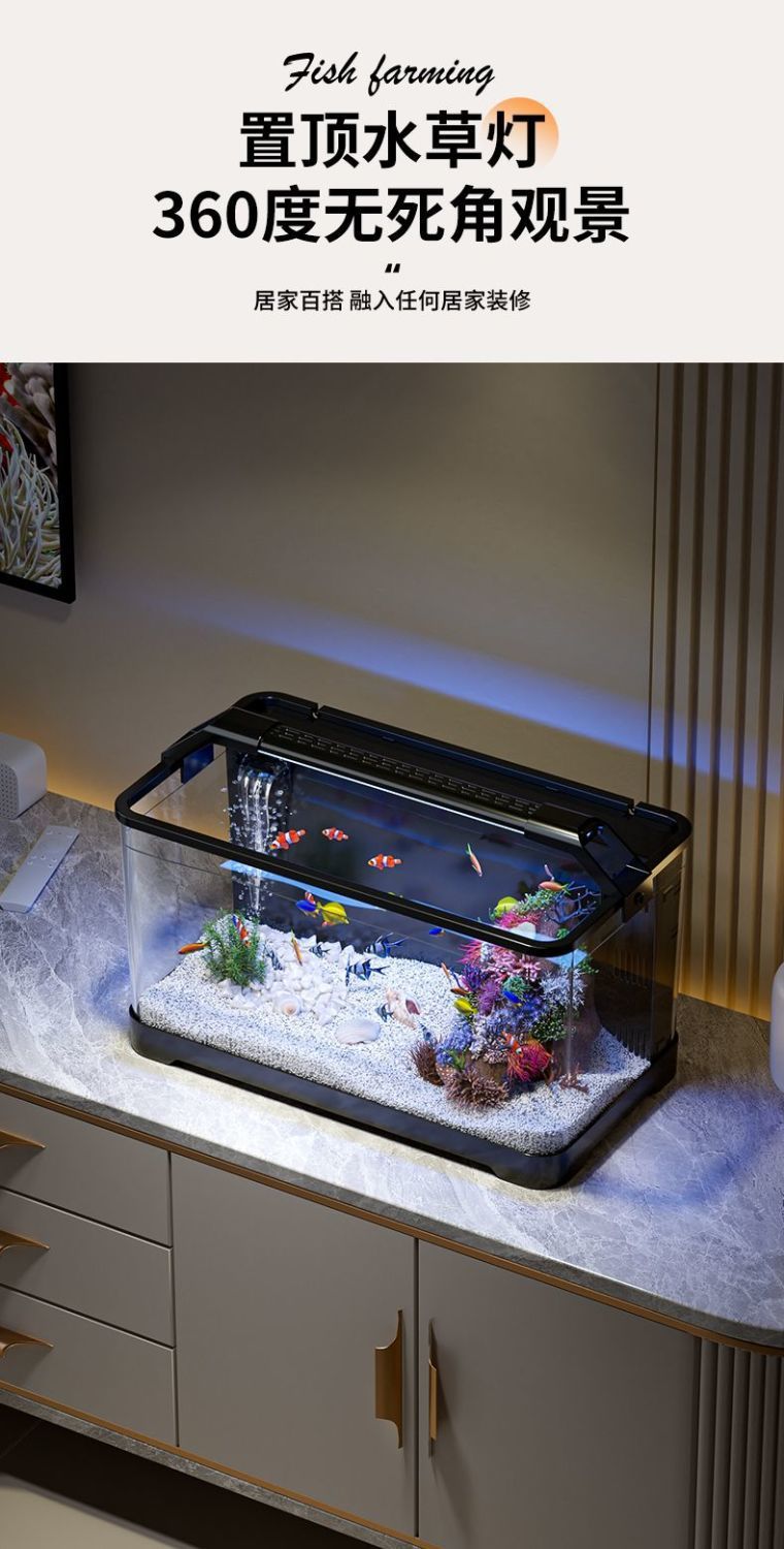 수조 수족관 투명 플라스틱 금붕어 탱크 게으른 발코니 데스크탑 홈 생태 조경 금붕어 백 필터 탱크스토어 가기
