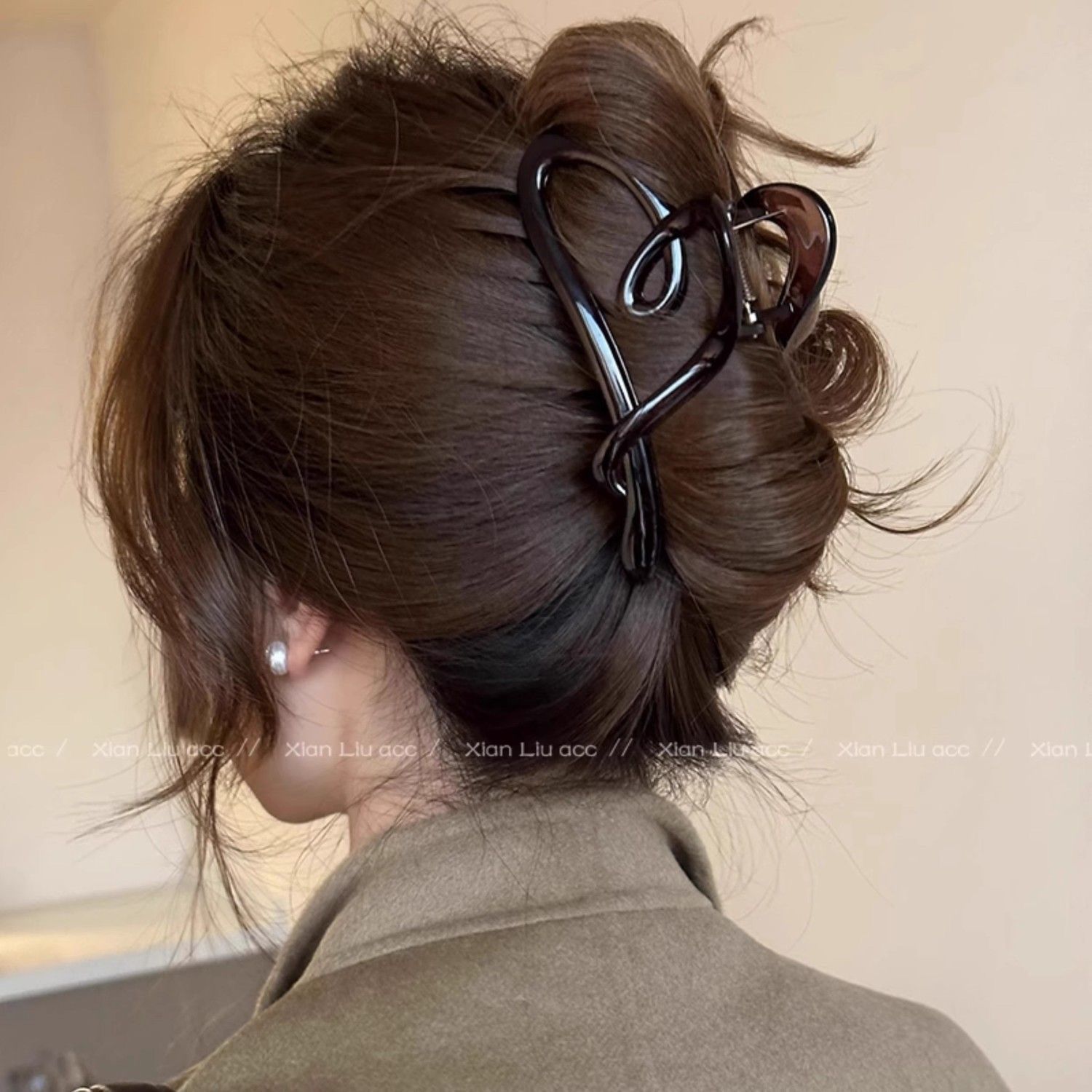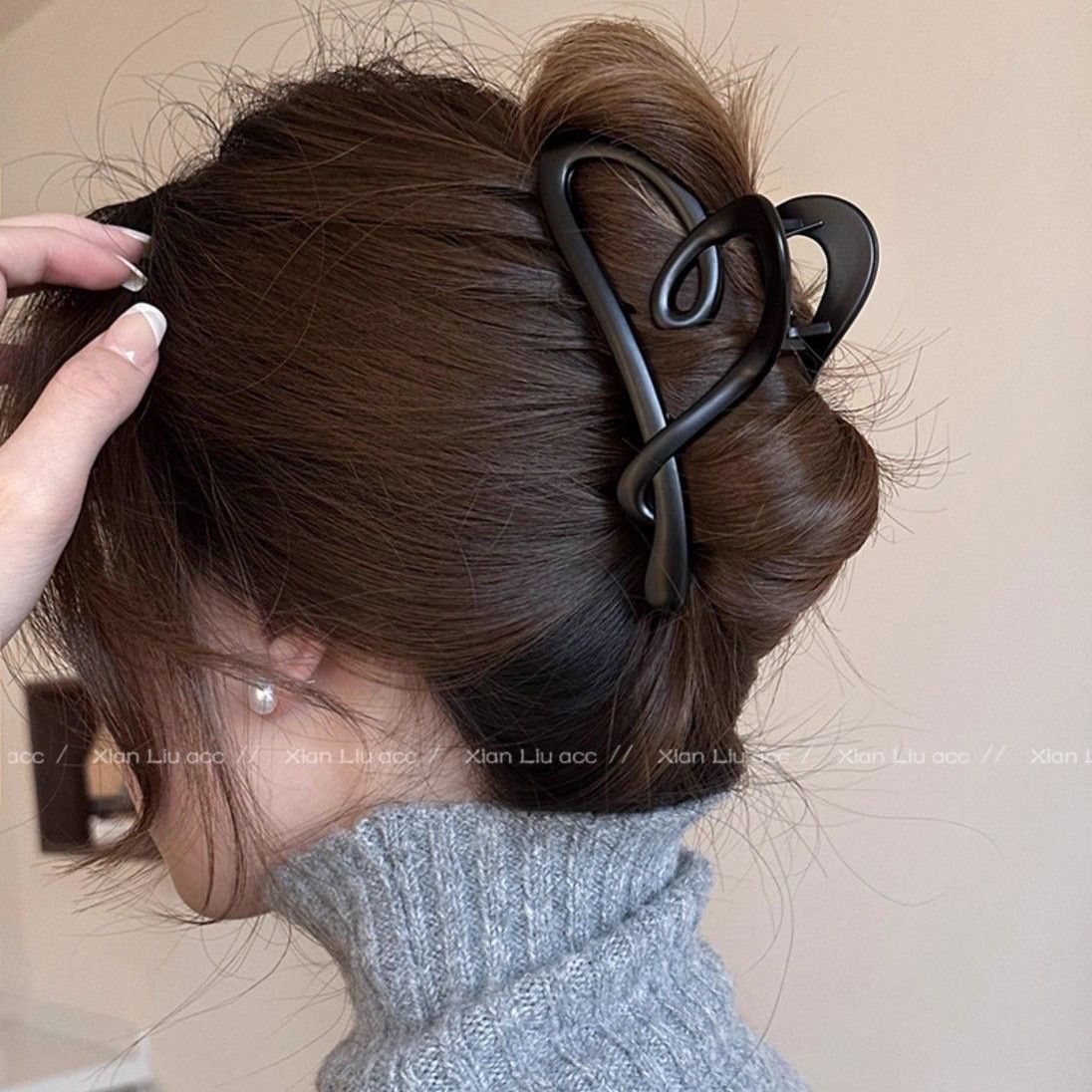 매트 블랙 하트 모양 대형 여성용 샤크 클립, 인스타 감성의 새로운 샤크 클립 헤어 액세서리