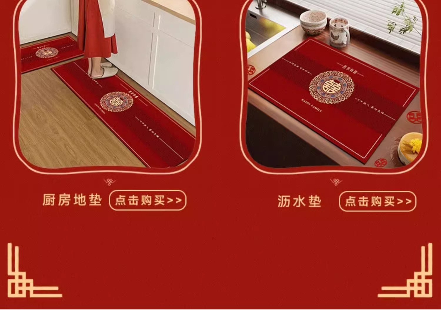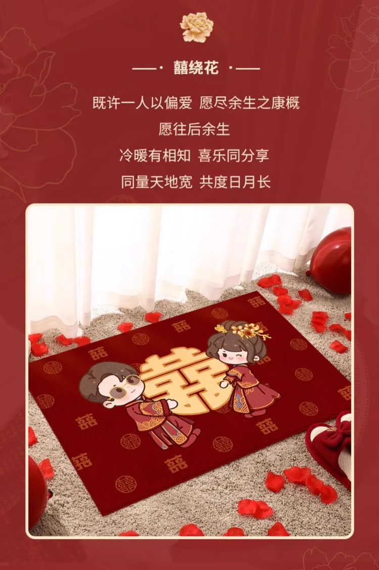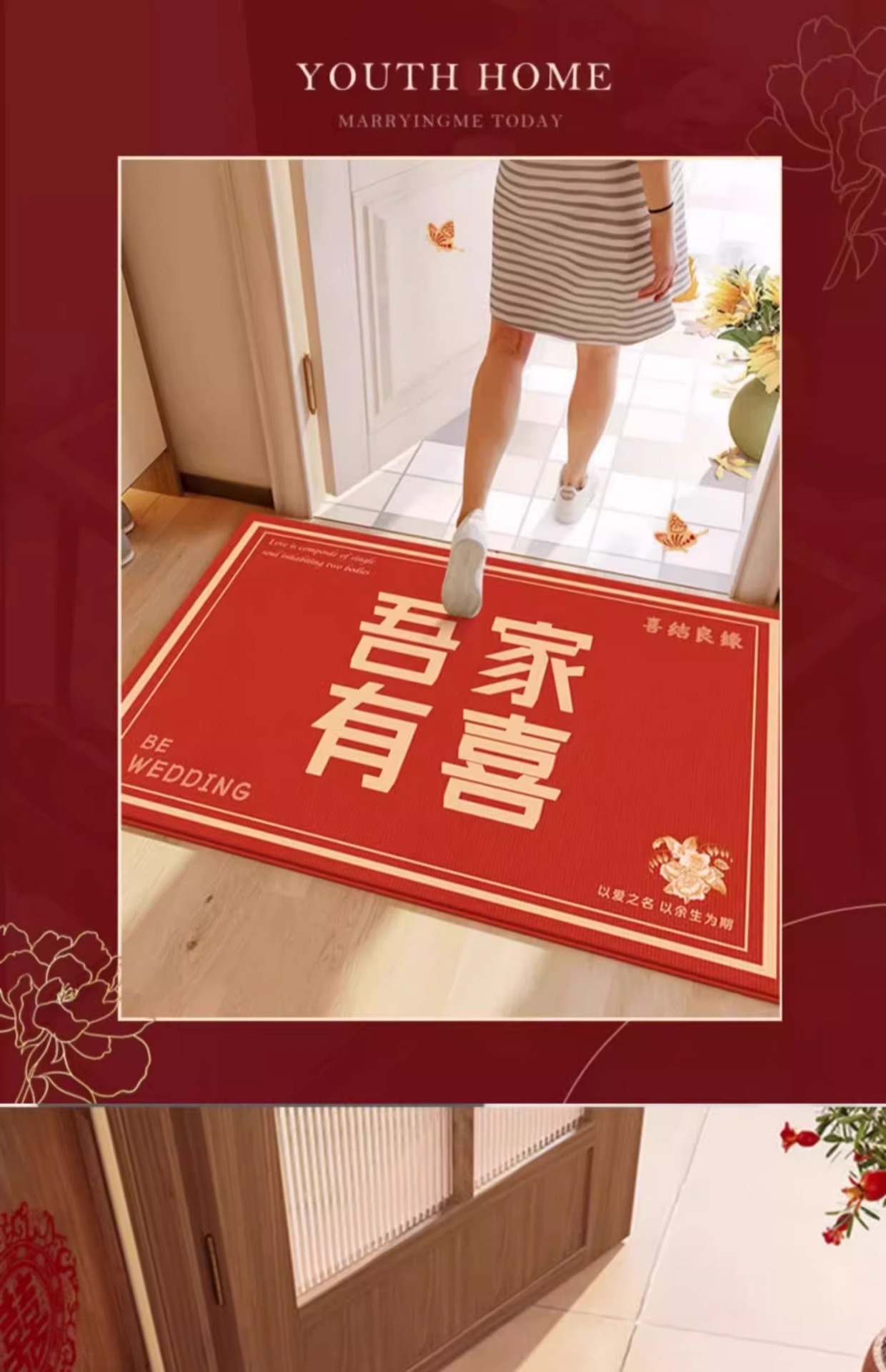 결혼 축하 문패, 현관문용, 새로운 중국식 빨간색 웨딩룸 출입문 매트, 침실용 미끄럼 방지 카펫스토어 가기