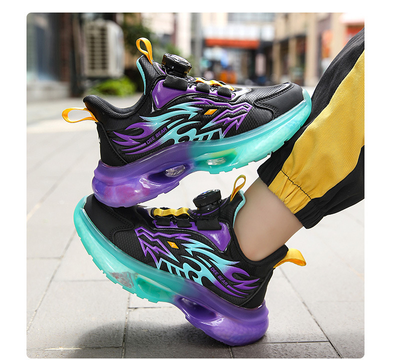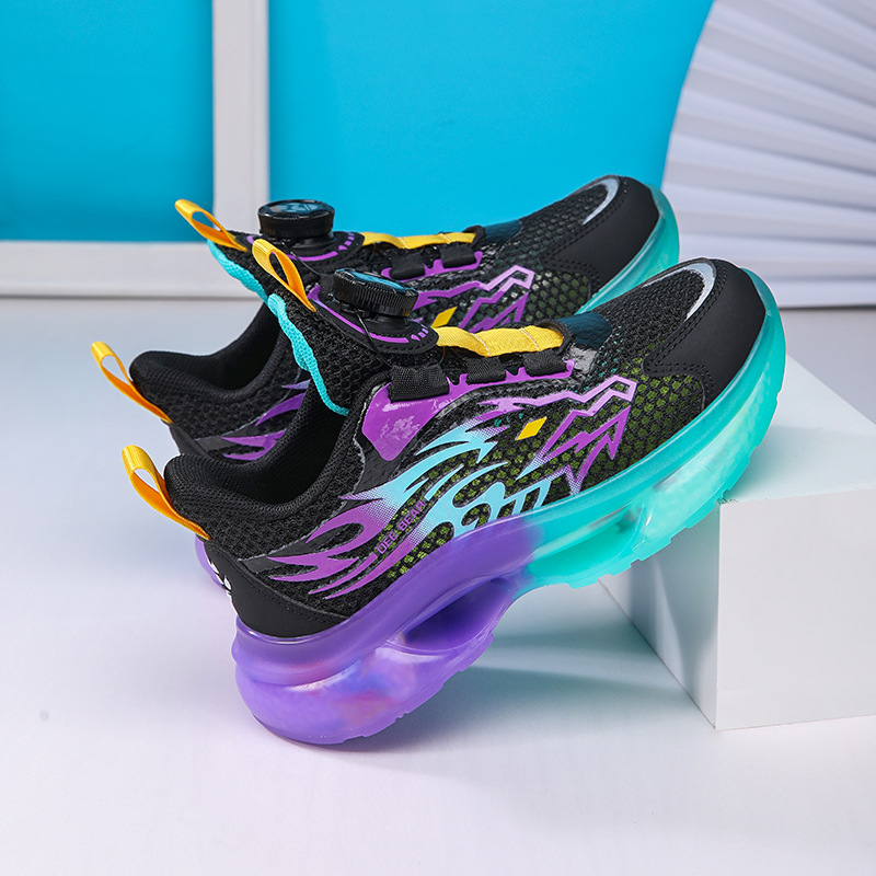 소년 신발 2025 여름 미끄럼 방지 통기성 부드러운 바닥 스포츠 신발 회전 버클 청소년 어린이 메쉬 운동화