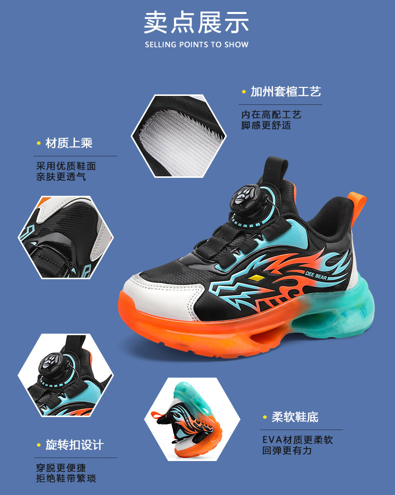 소년 신발 2025 여름 미끄럼 방지 통기성 부드러운 바닥 스포츠 신발 회전 버클 청소년 어린이 메쉬 운동화스토어 가기