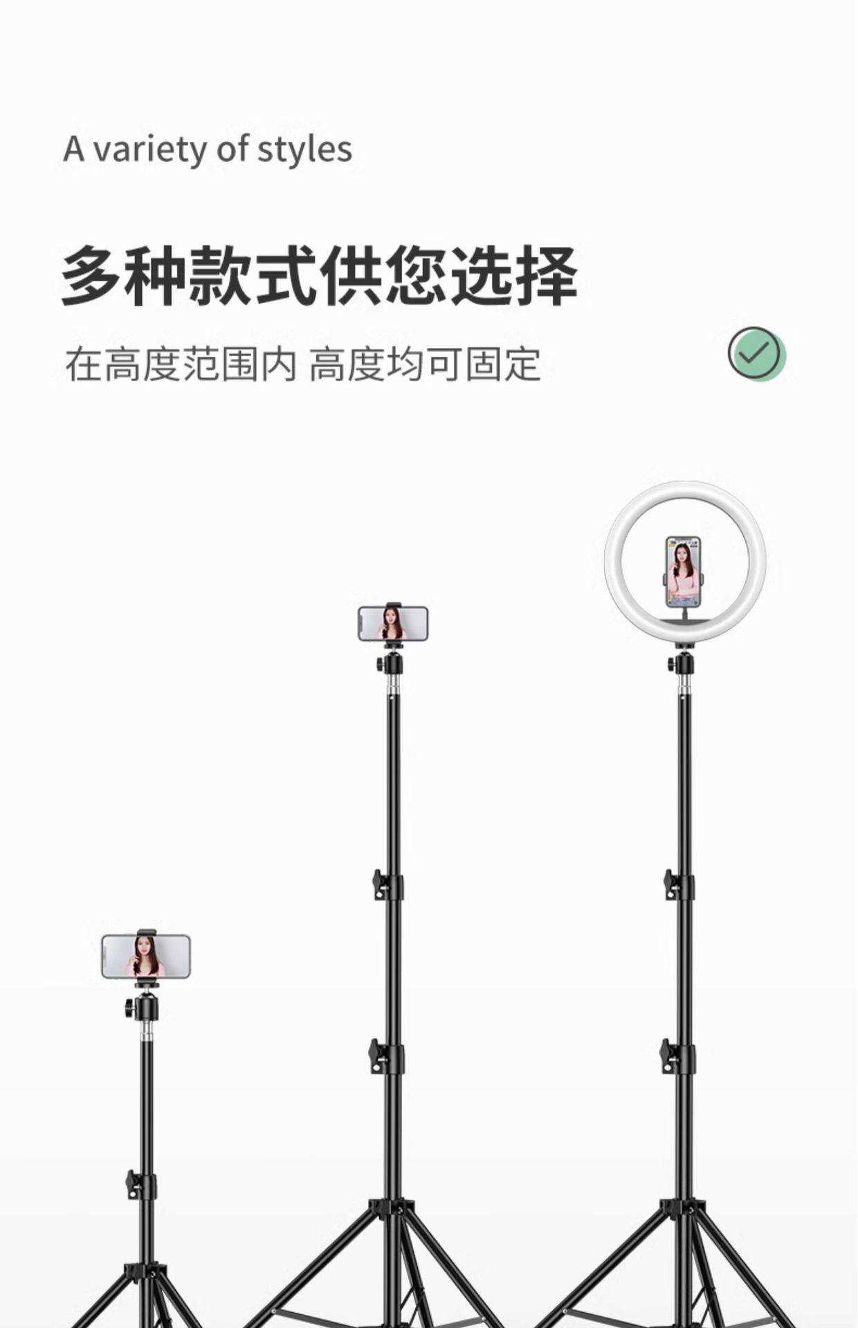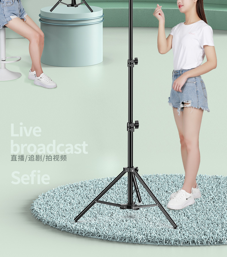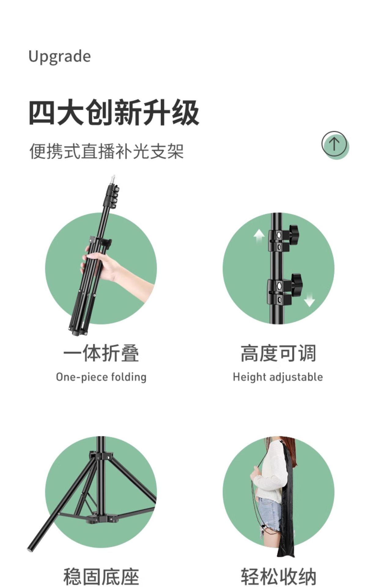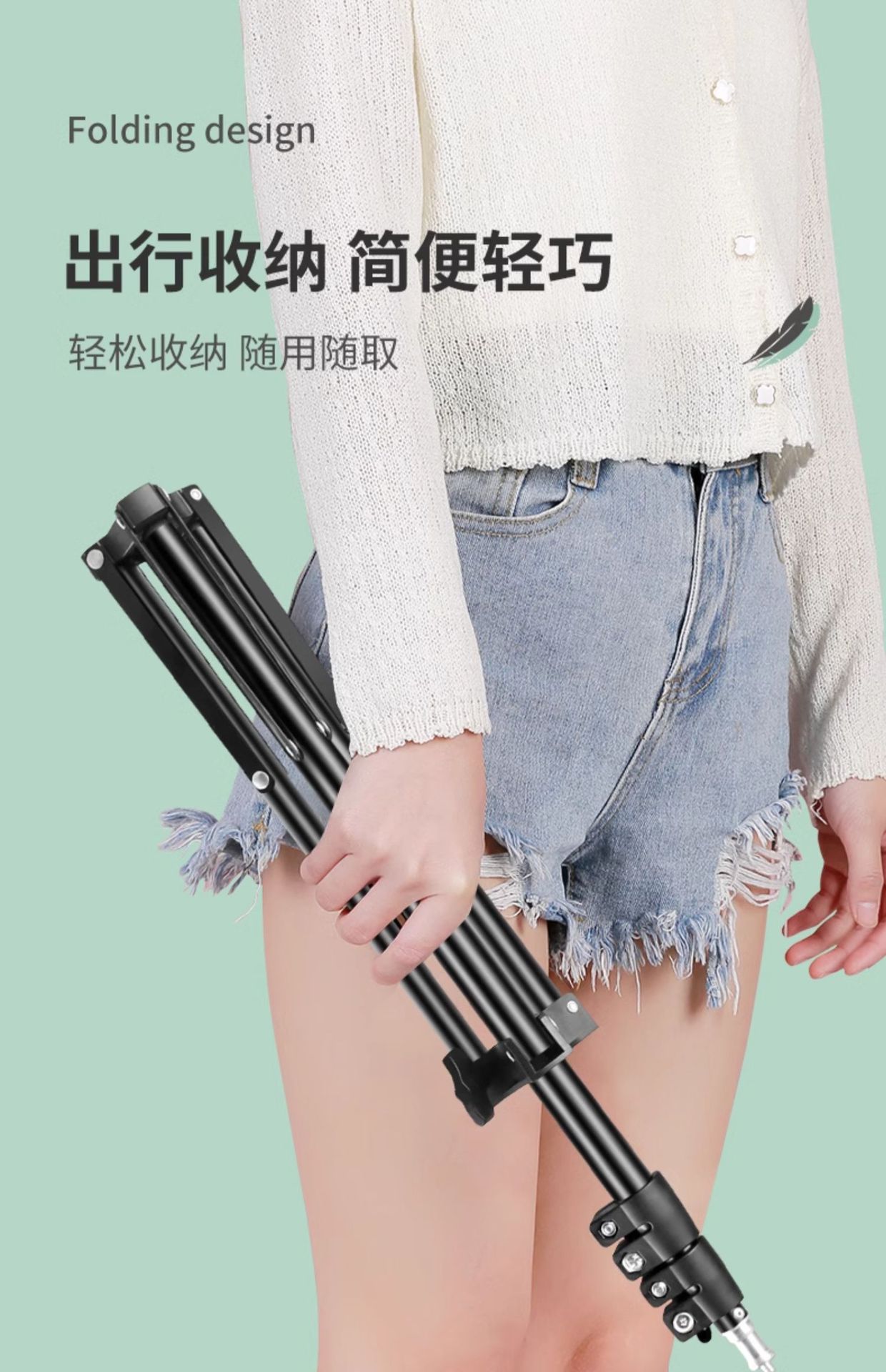 • 2.1m [업그레이드된 합금 스탠드] 10inch 조명 + 마이크 스탠드 + 싱글 카메라 + 셀카 + 보관 가방