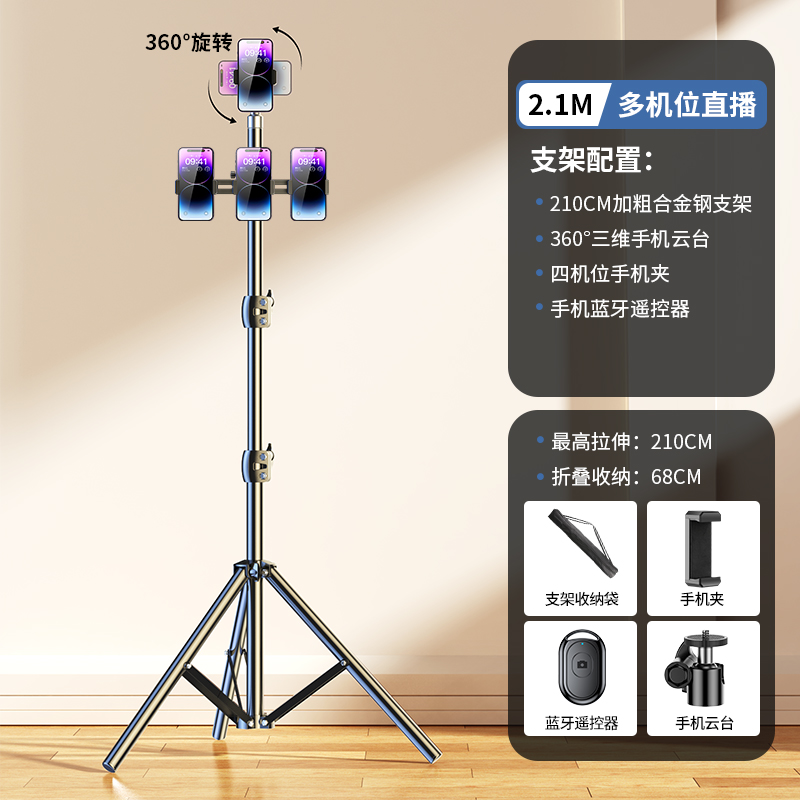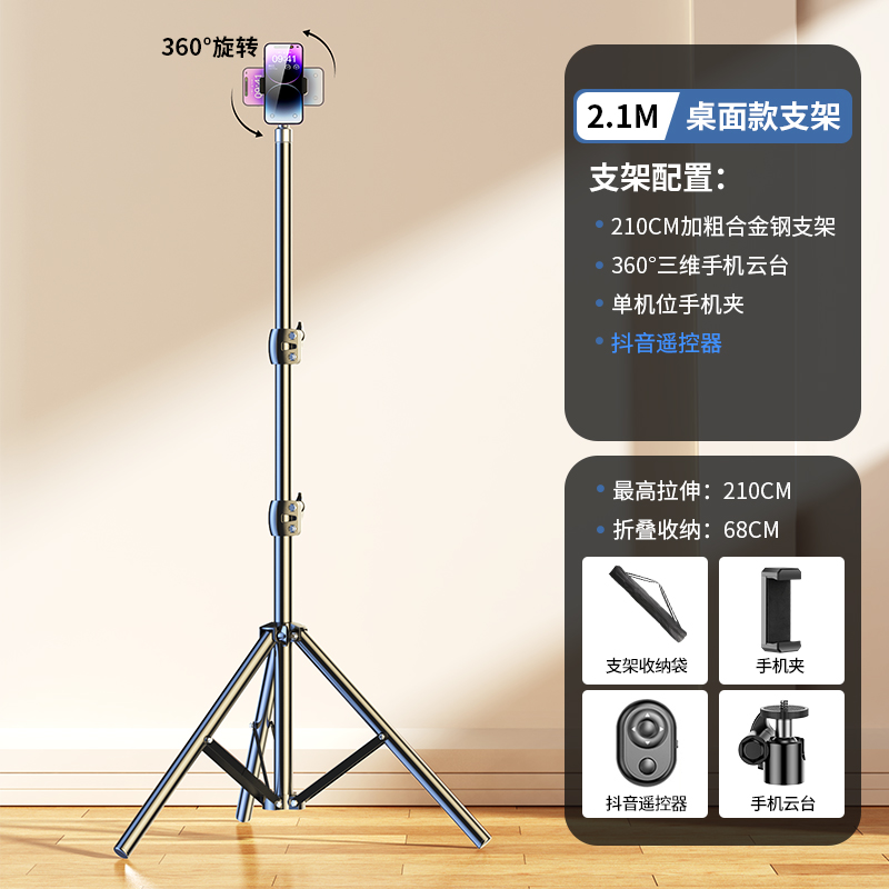 • 2.1m [업그레이드된 합금 브래킷] + [Douyin 리모컨] 단일 카메라 + 보관 가방