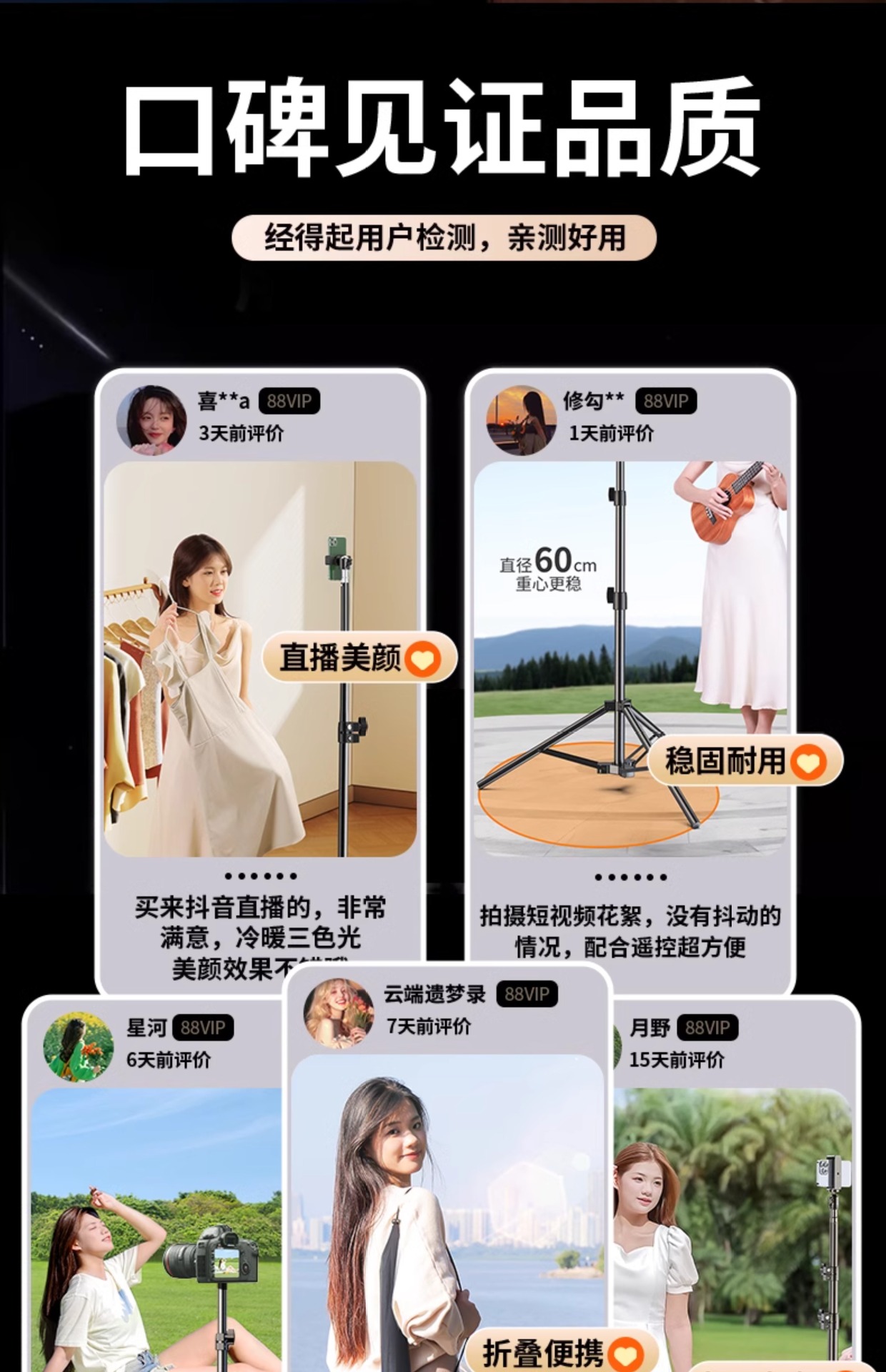 • 1.7m [업그레이드된 합금 브래킷] + [Douyin 리모컨] 단일 카메라 + 보관 가방