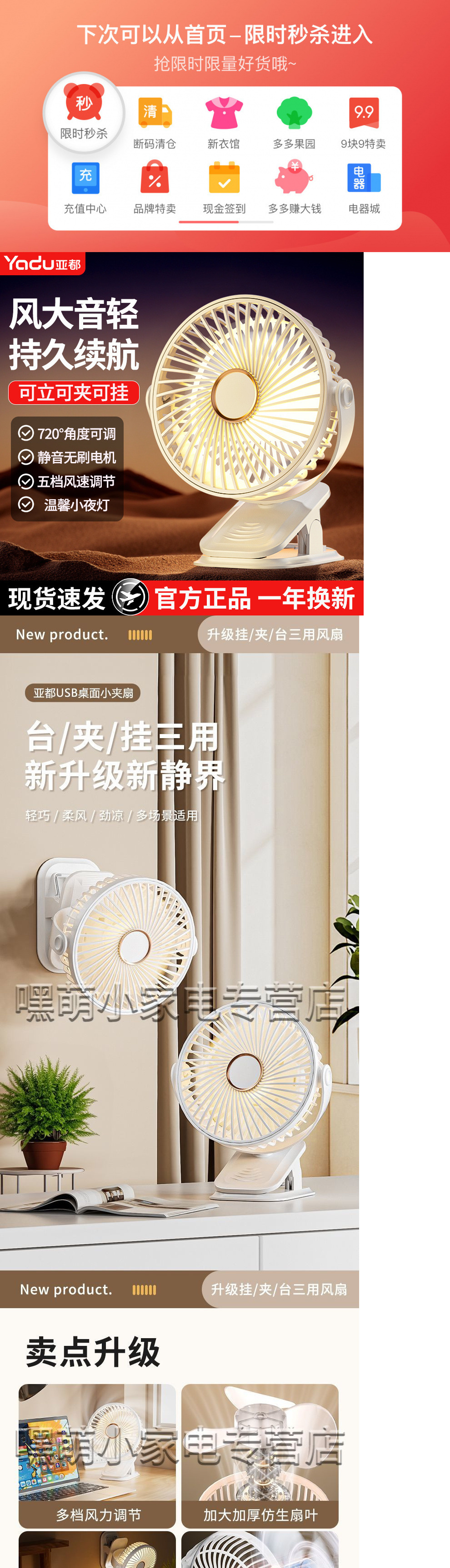 Yadu 클립 소형 팬 충전식 휴대용 팬 학생 기숙사 사무실 데스크탑 소형 선풍기스토어 가기