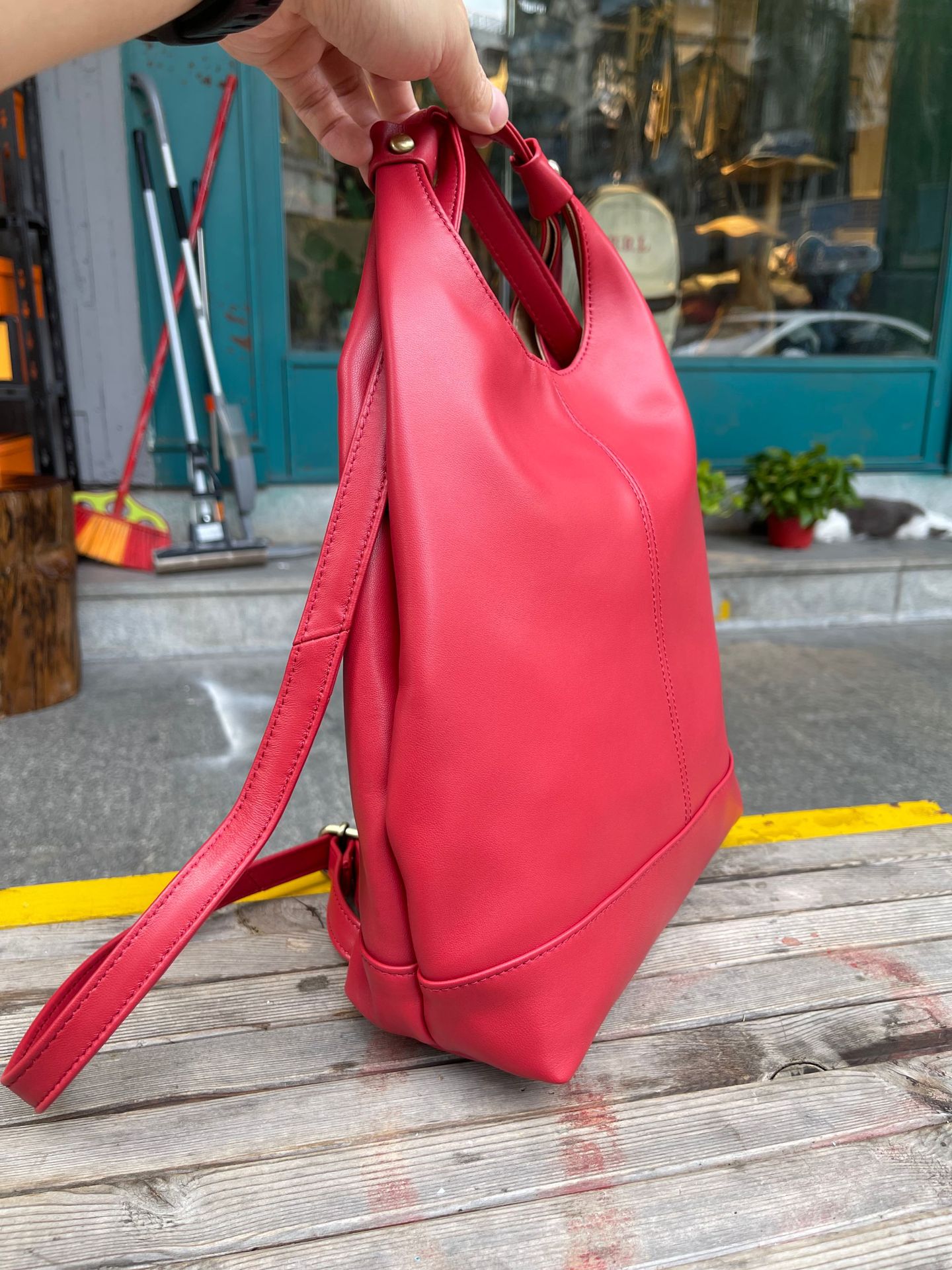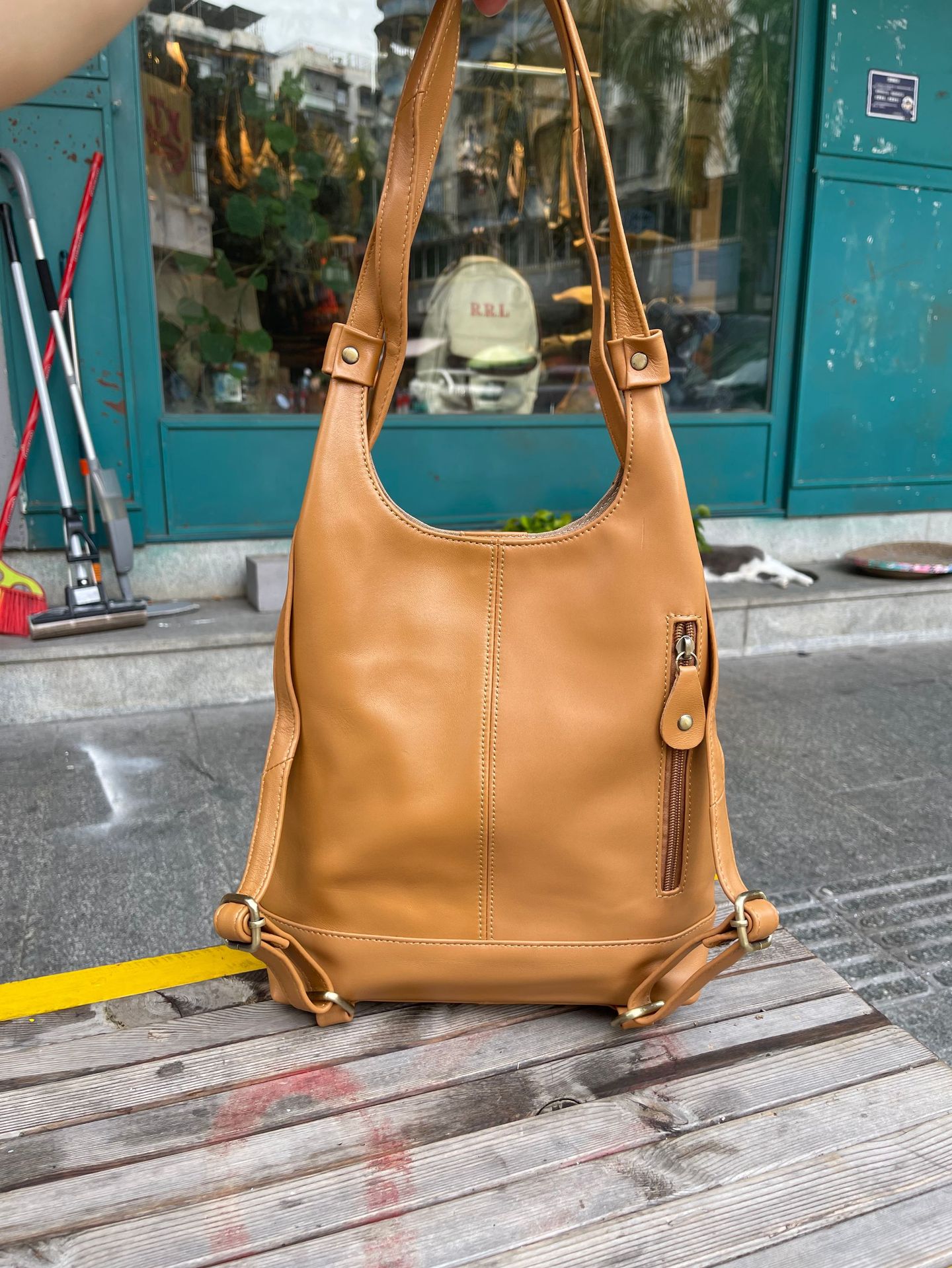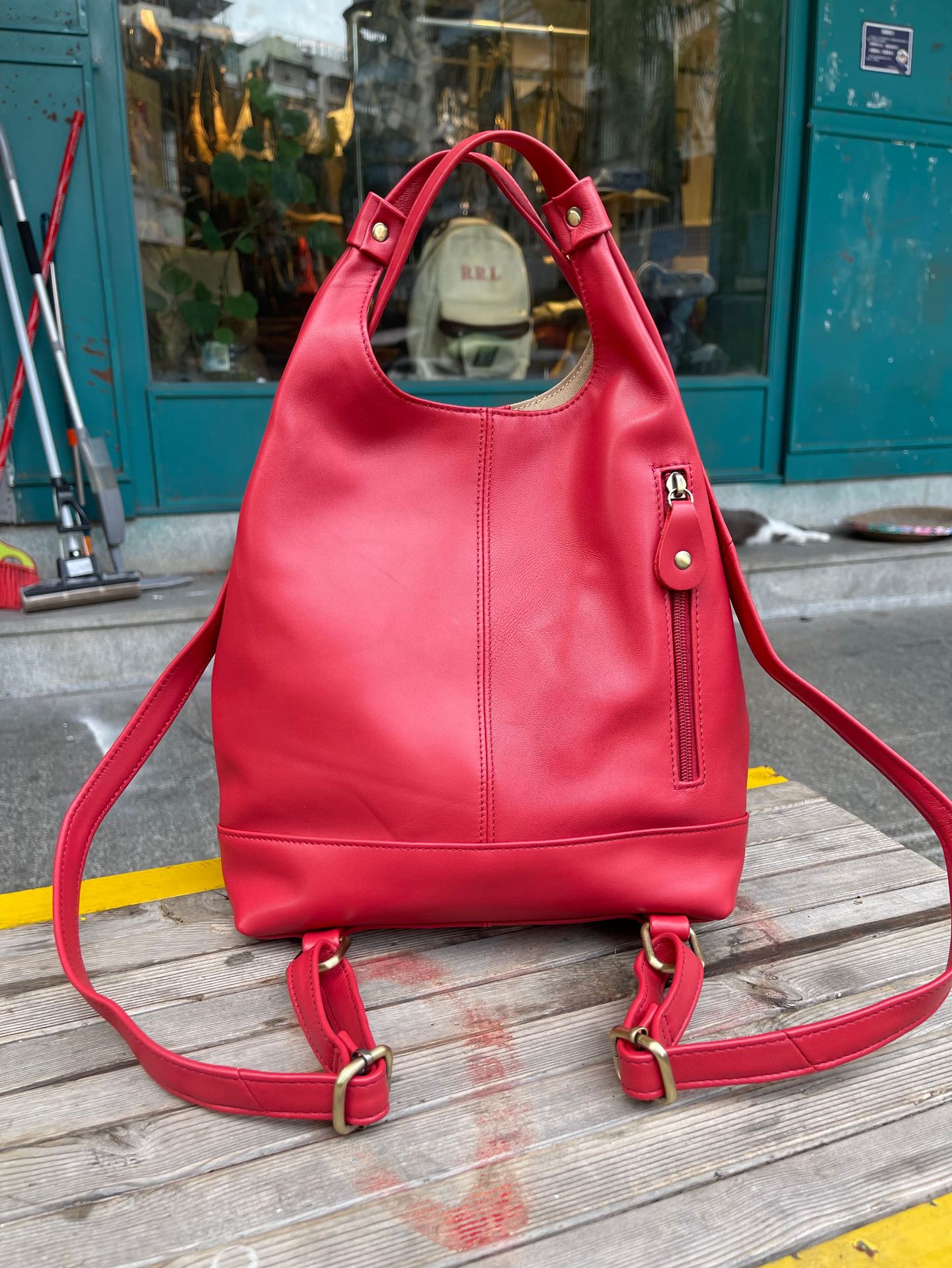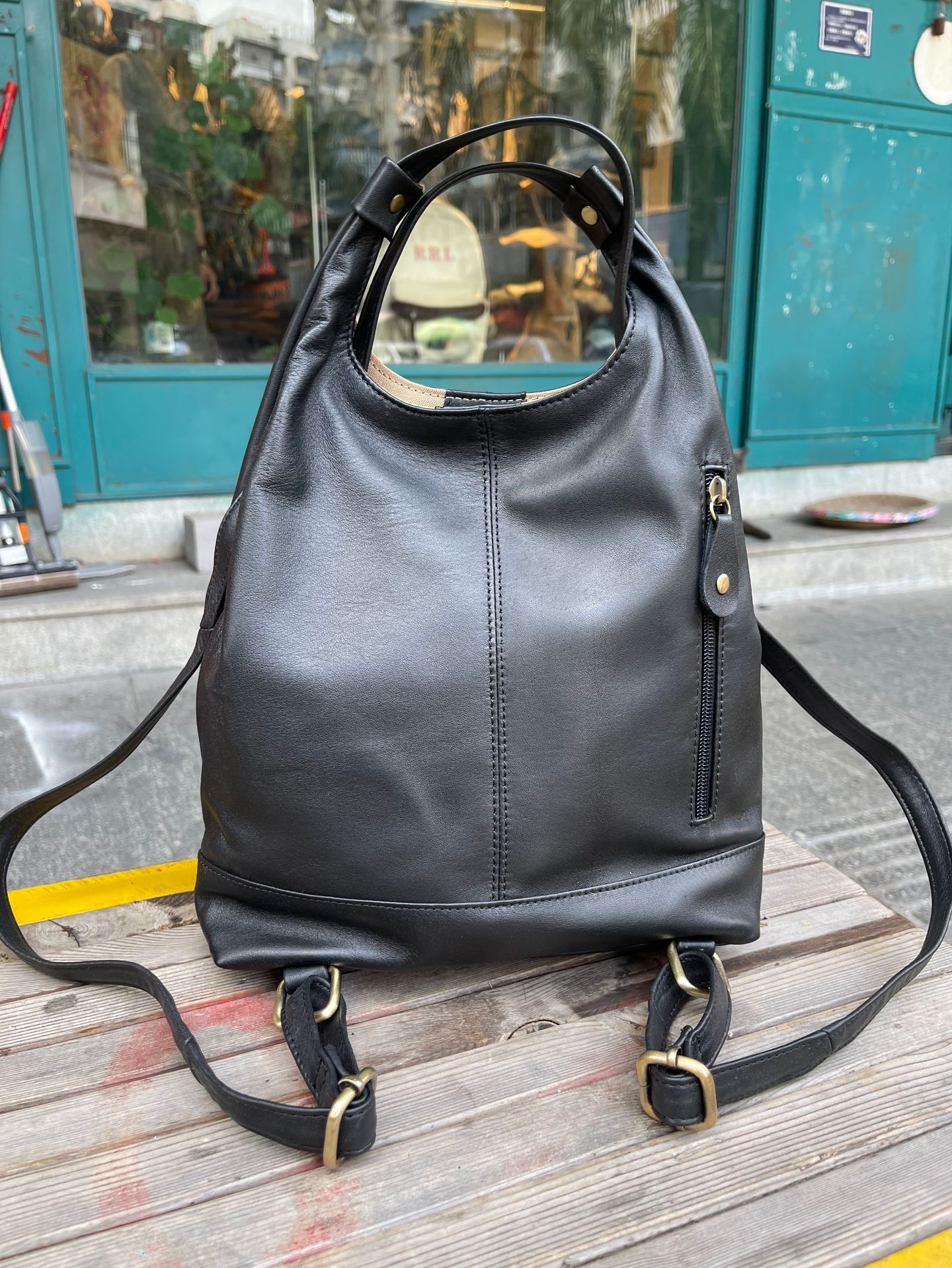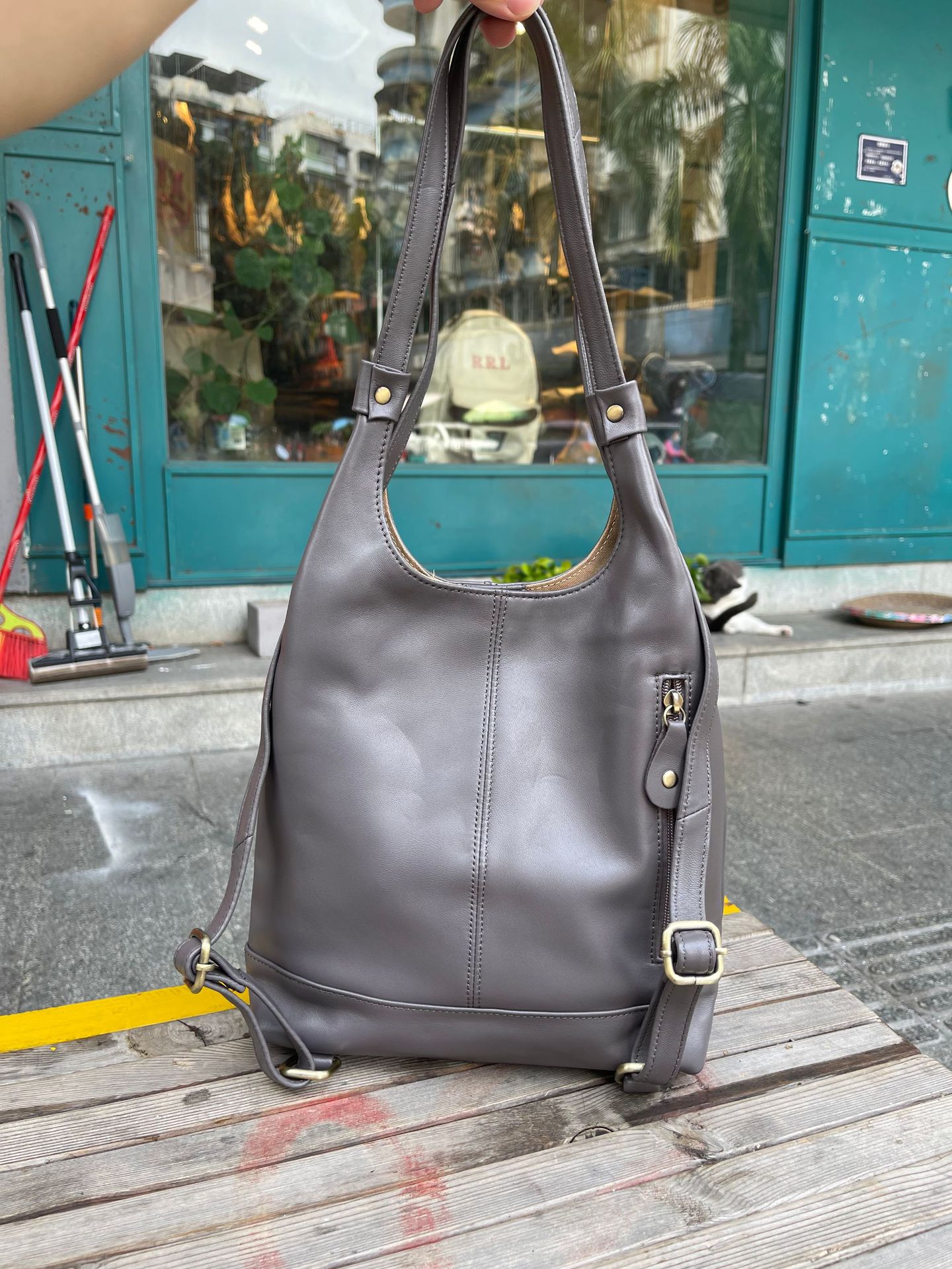 한국 스타일 3가지 용도 여성용 숄더백 겸 겨드랑이백, 최고급 양가죽, 트렌디한 인스 스타일 캐주얼 백팩, 다용도스토어 가기