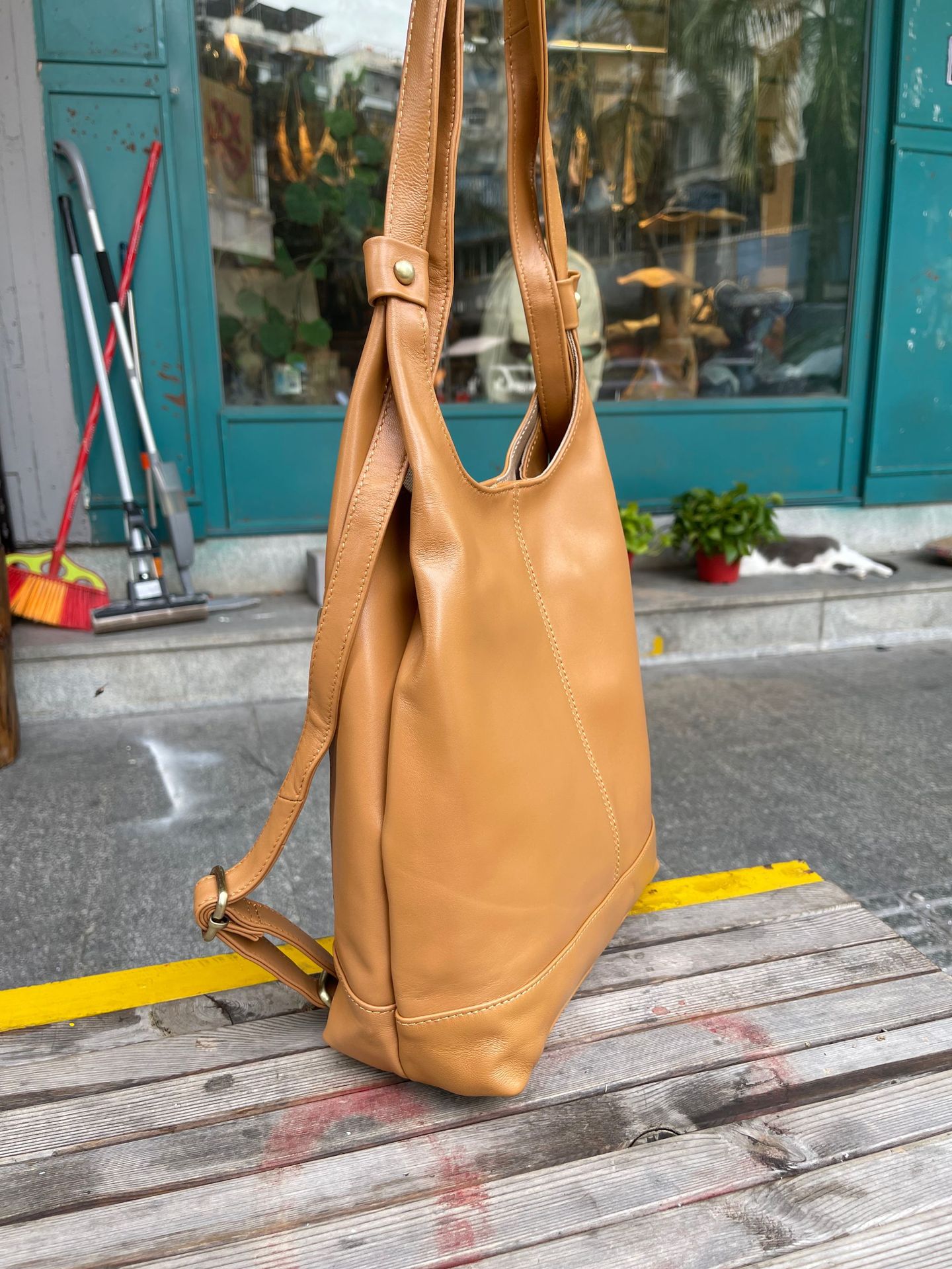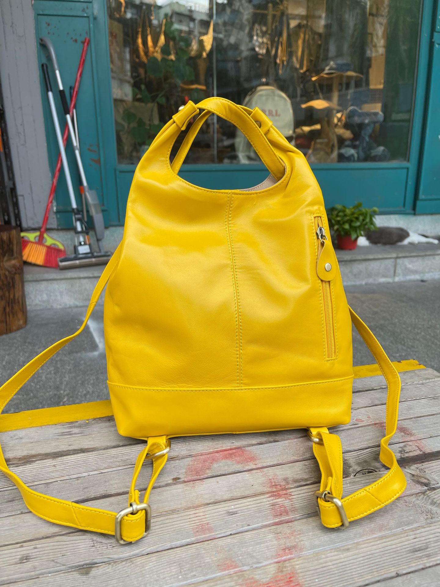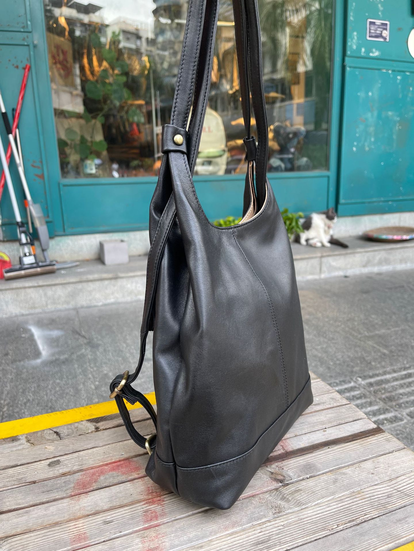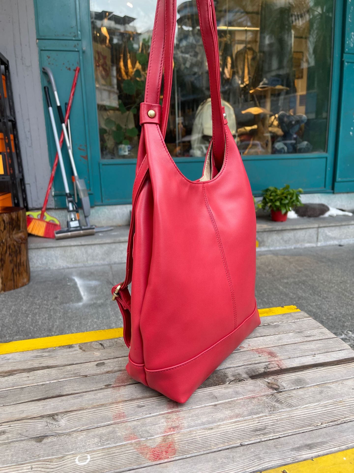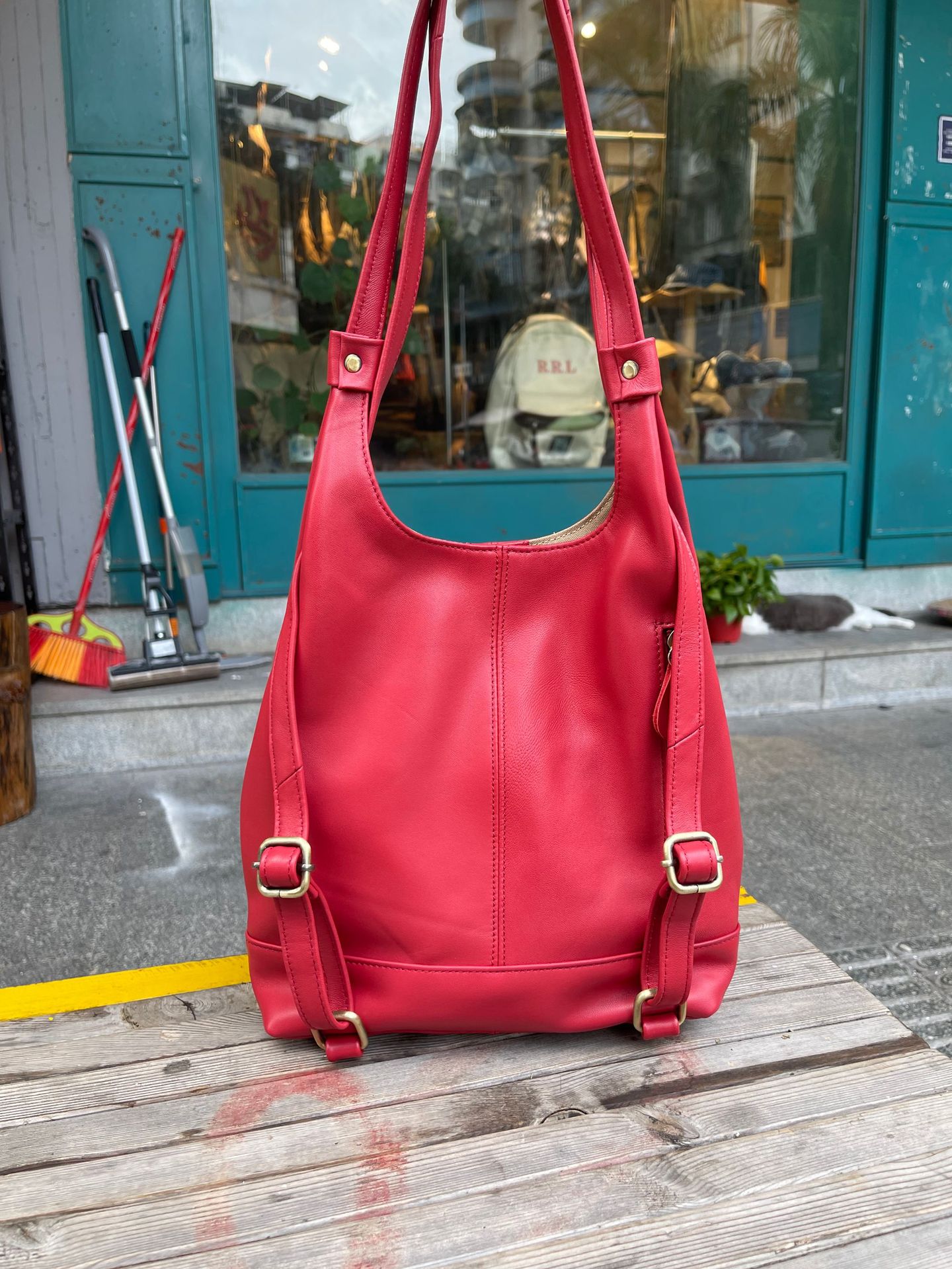 한국 스타일 3가지 용도 여성용 숄더백 겸 겨드랑이백, 최고급 양가죽, 트렌디한 인스 스타일 캐주얼 백팩, 다용도스토어 가기