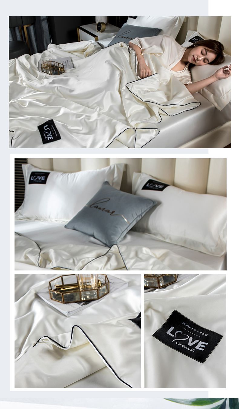 아이스 실크 에어컨 이불 여름 시원한 이불 4피스 얇은 여름 시트 세탁 가능한 풀 세트 텐셀 더블 여름 이불