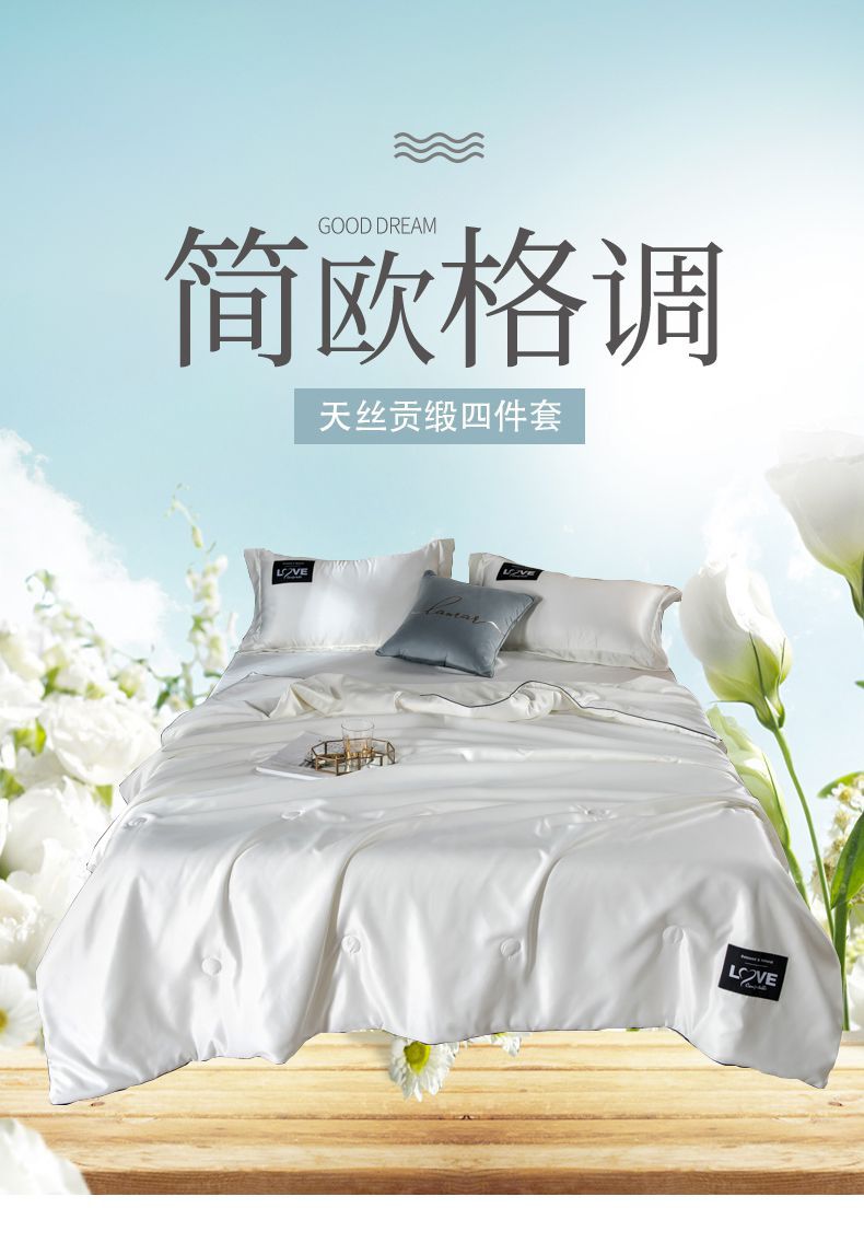 아이스 실크 에어컨 이불 여름 시원한 이불 4피스 얇은 여름 시트 세탁 가능한 풀 세트 텐셀 더블 여름 이불스토어 가기