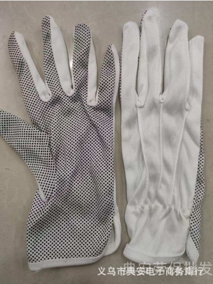 폴리에스터 3줄 도트 플라스틱 에티켓 장갑 흰색 폴리에스터 커피걸 보안 도어맨 문양 먼지 없는 작업장 미끄럼 방지 특별 가격