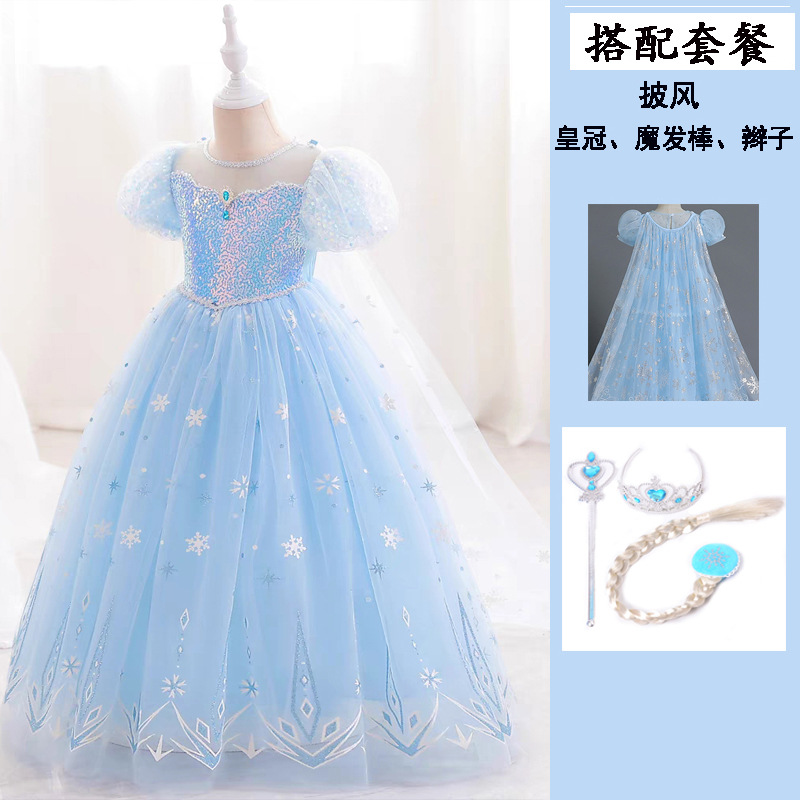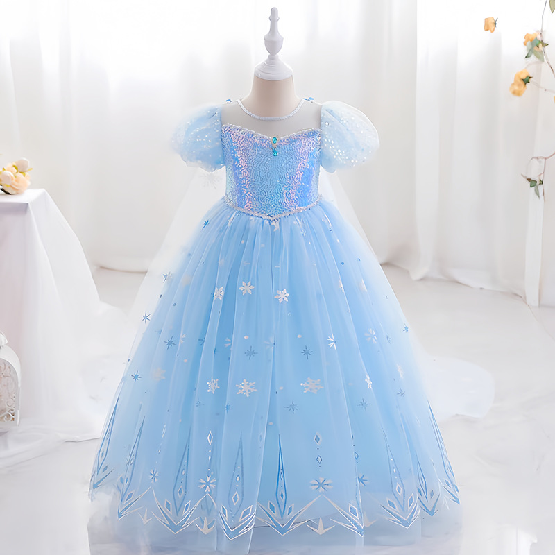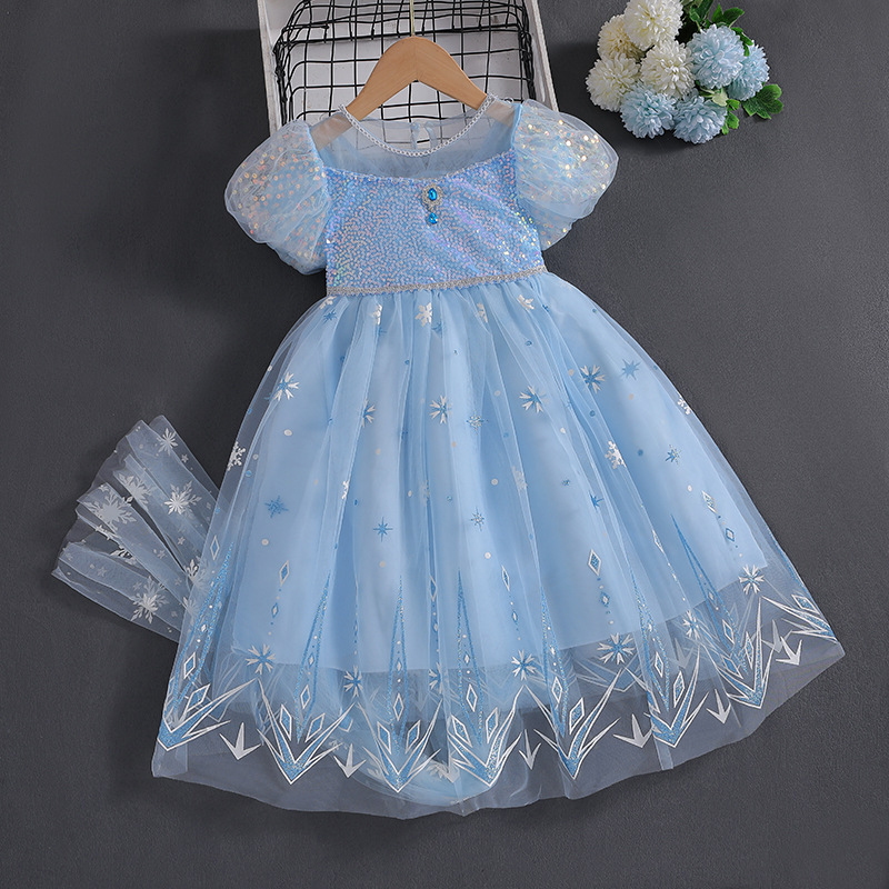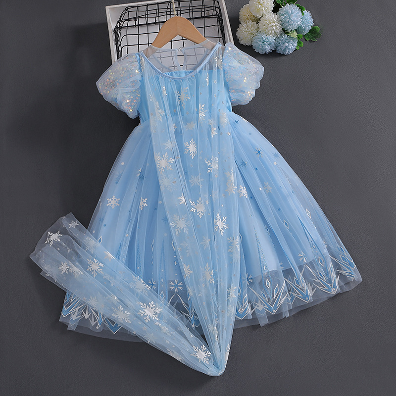아이샤 소녀 원피스 짧은 소매 2025 여름 새로운 원피스 어린이 공주 원피스 여성 보물 생일 머리카락스토어 가기
