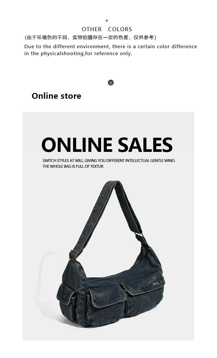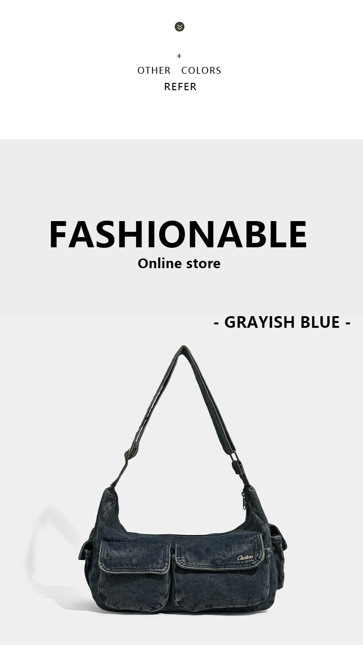 데님백 여성 신작 한국 인터넷 연예인 복고풍 패션 심플 숄더백 겨드랑이 가방 휴대용 토트백 트렌디스토어 가기