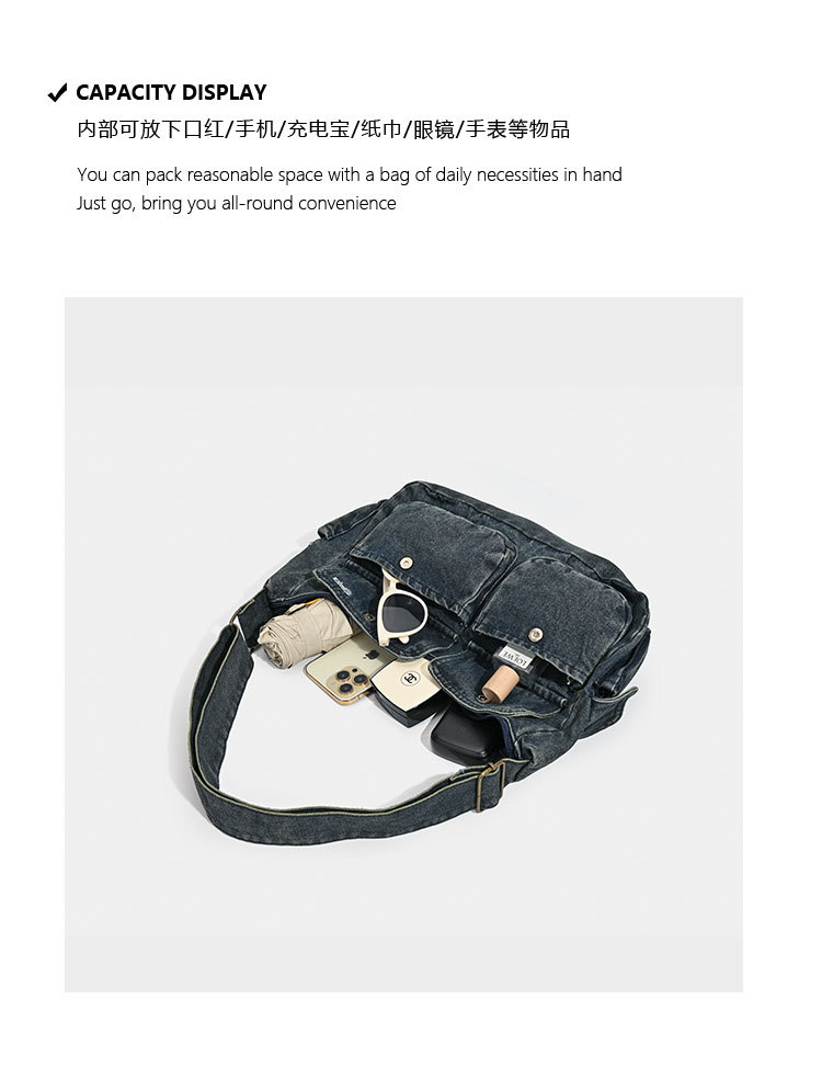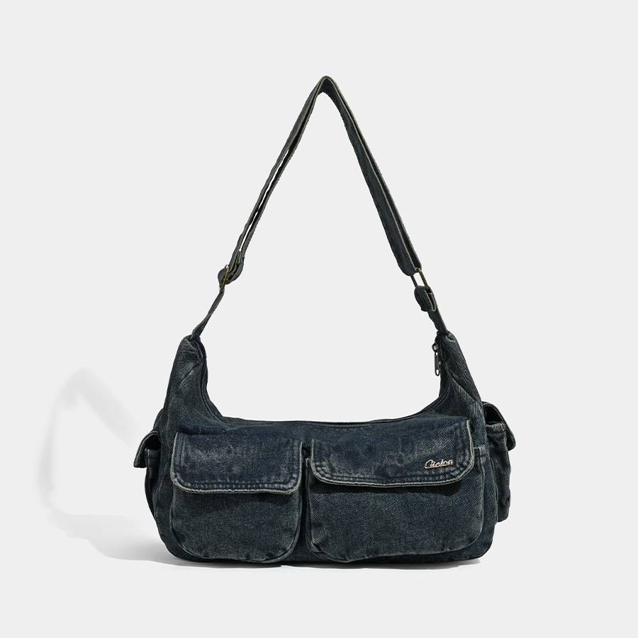 데님백 여성 신작 한국 인터넷 연예인 복고풍 패션 심플 숄더백 겨드랑이 가방 휴대용 토트백 트렌디