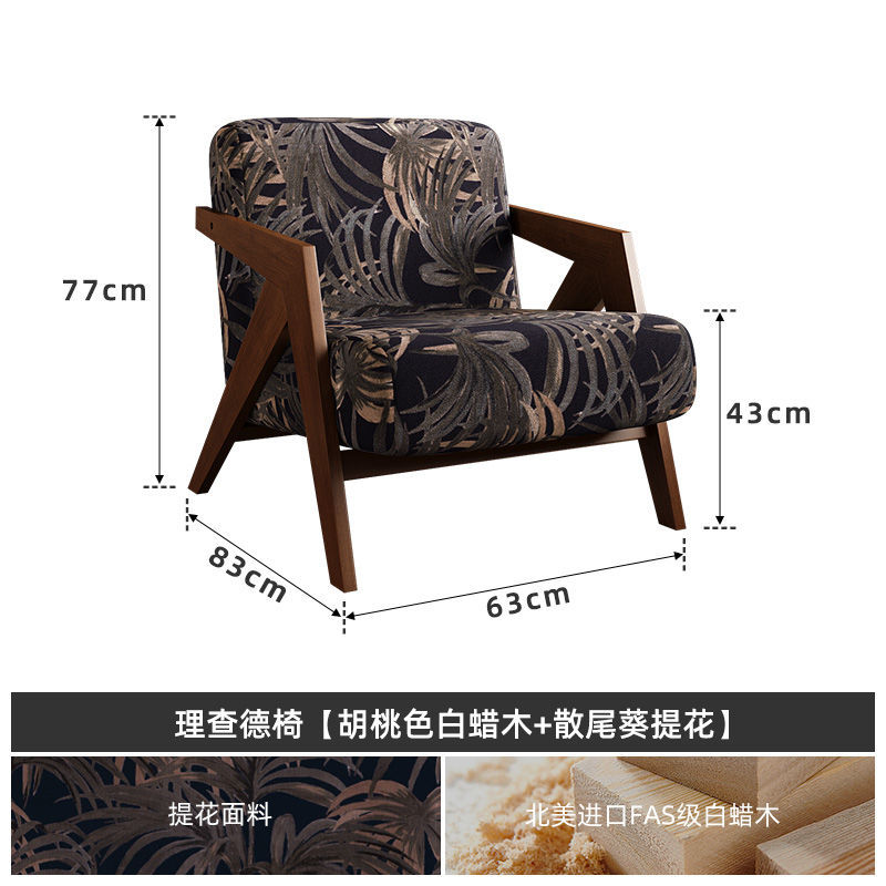 중세 와비사비 스타일 리처드 의자 인터넷 연예인 B&B 거실 작은 아파트 싱글 소파 타이거 의자 복고풍 레저 의자