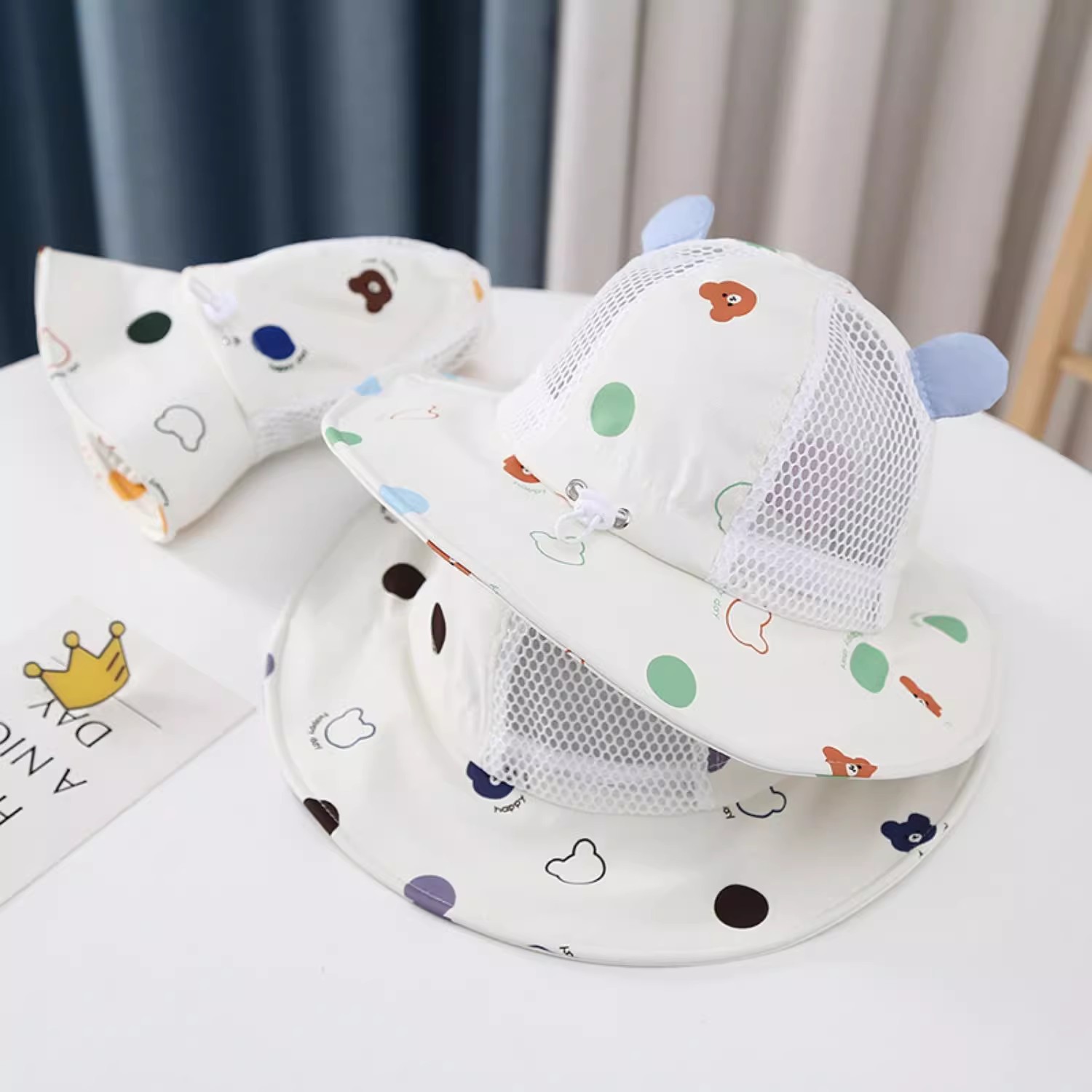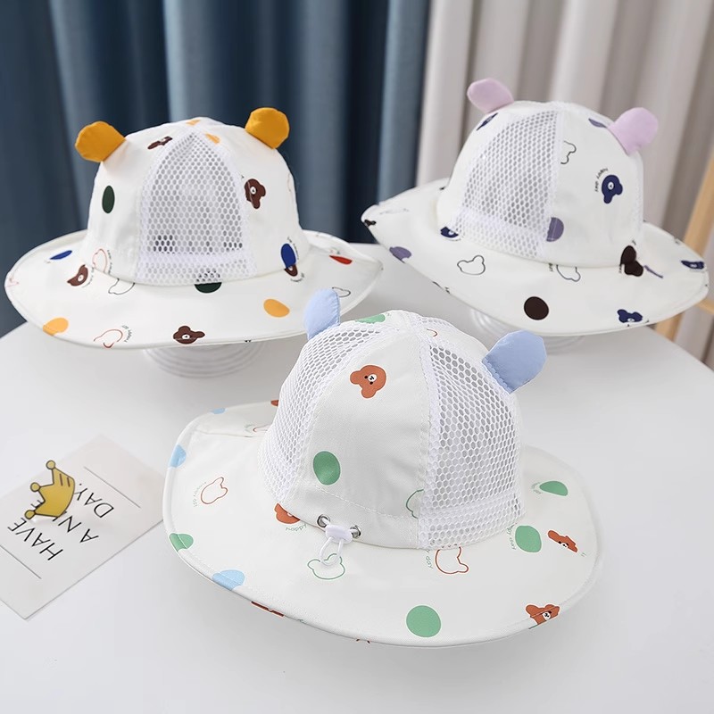 아기 모자 여름 어린이 태양 보호 모자 아기 소년과 소녀 큰 챙 조절 가능한 여름 메쉬 모자 태양 모자스토어 가기