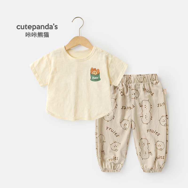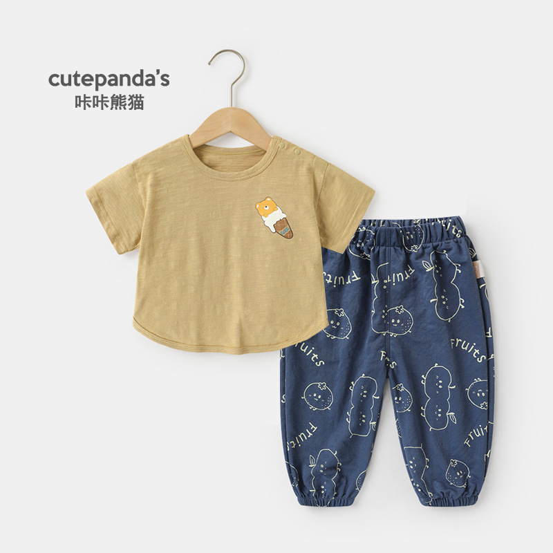 Kaka Panda 소녀 반팔 모기 방지 바지 투피스 아동복 소년 여름 캐주얼 의류 아기 아동복스토어 가기