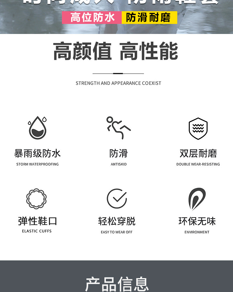 여성용 및 남성용 성인 레인슈즈 커버, 비오는 날 방수 및 미끄럼 방지 레인슈즈, 두껍고 내마모성이 뛰어난 워터슈즈, 패셔너블한 하이탑 레인부츠