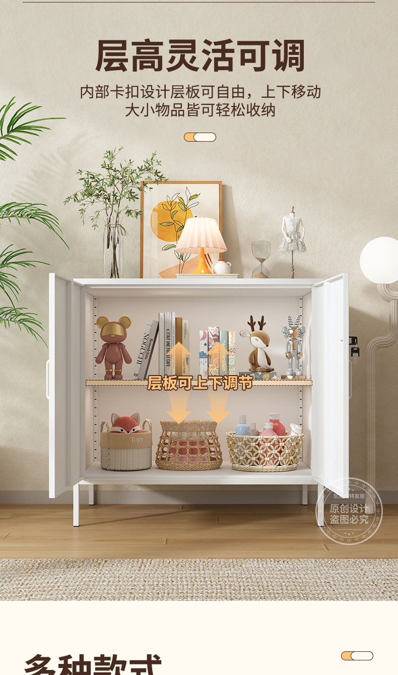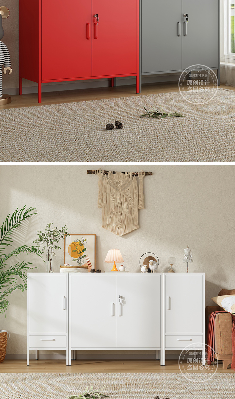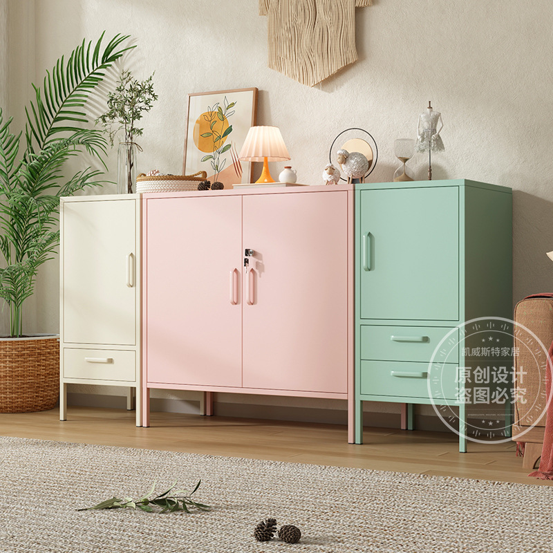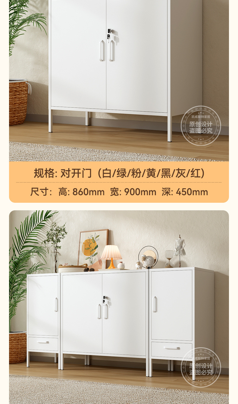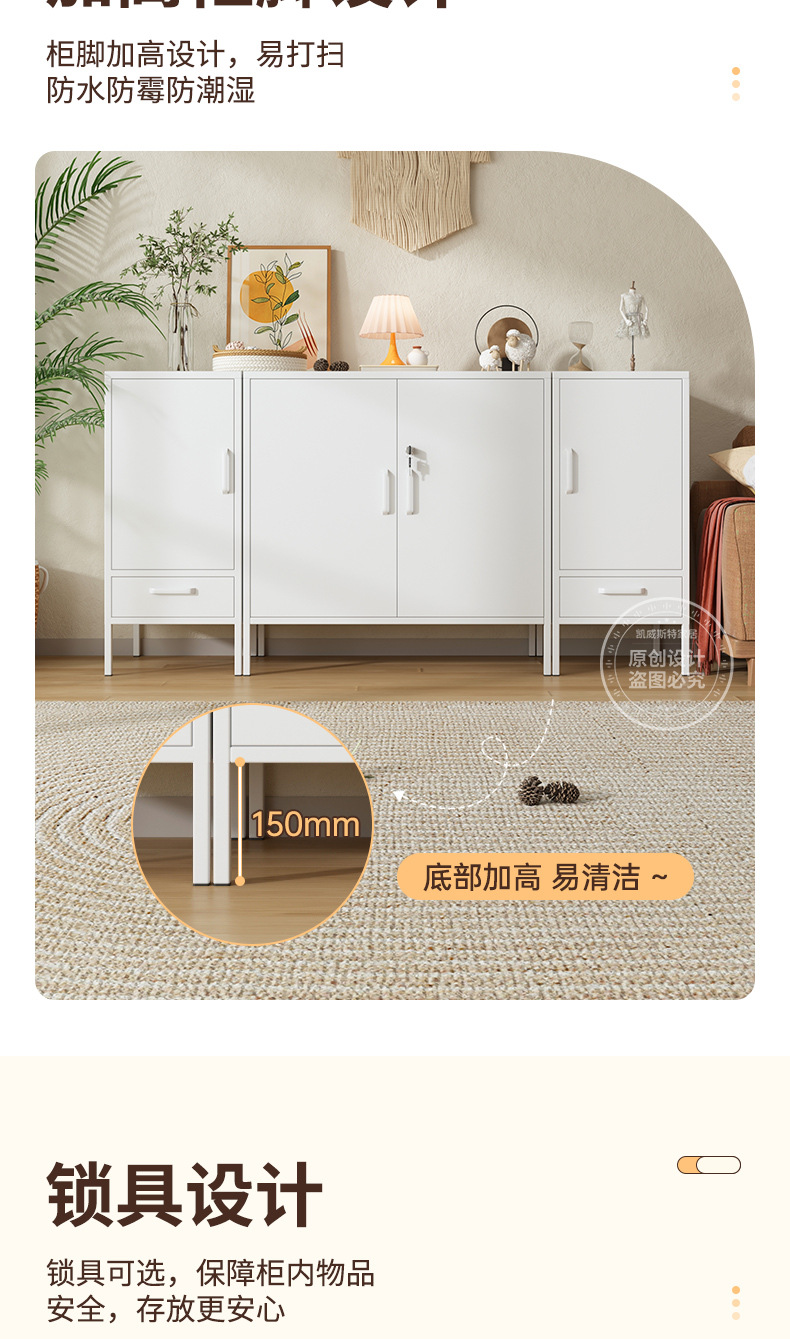 크림 스타일 찬장 철제 바닥 거실 주방 대용량 수납 캐비닛 잠금 장치가 있는 발코니 수납 캐비닛 간단한 p^