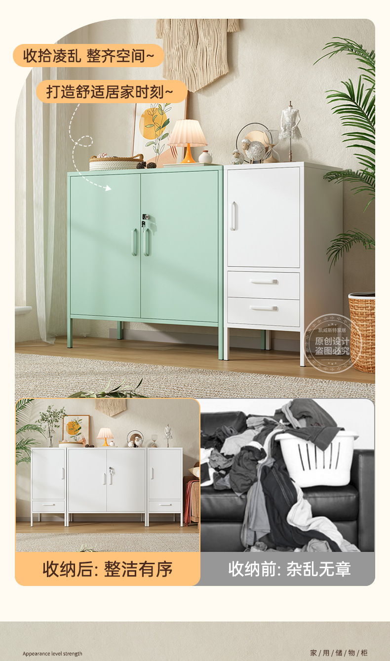 크림 스타일 찬장 철제 바닥 거실 주방 대용량 수납 캐비닛 잠금 장치가 있는 발코니 수납 캐비닛 간단한 p^스토어 가기