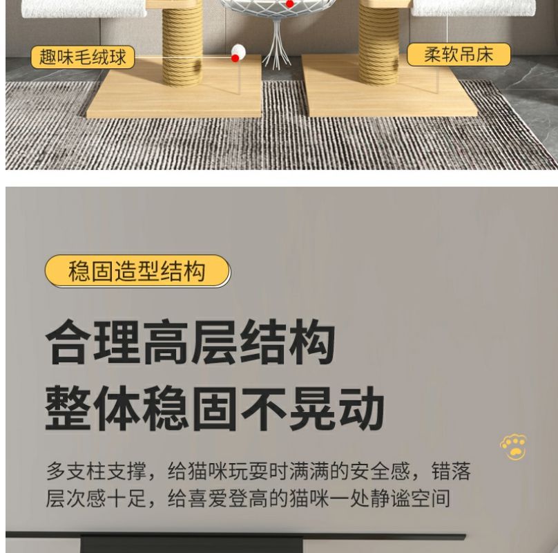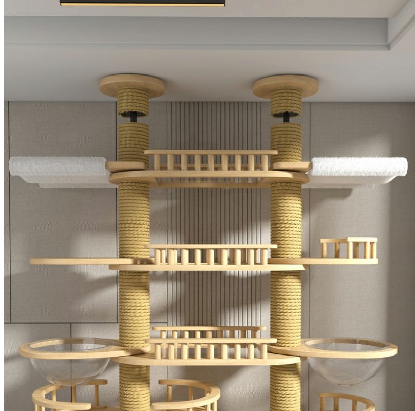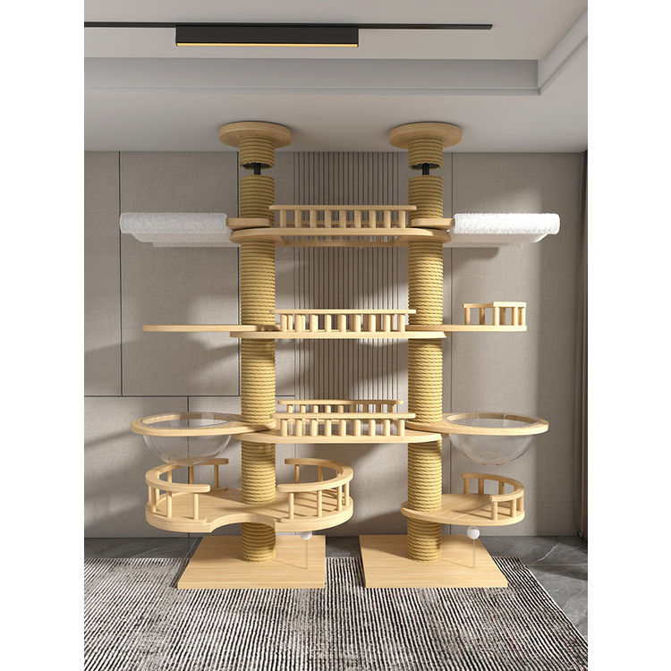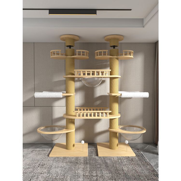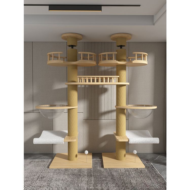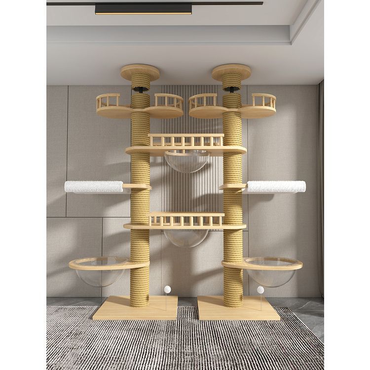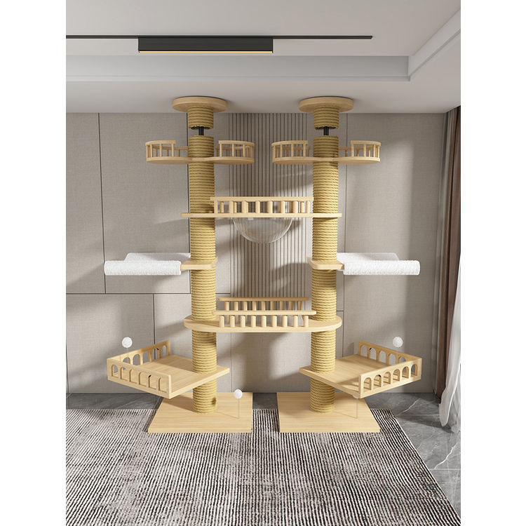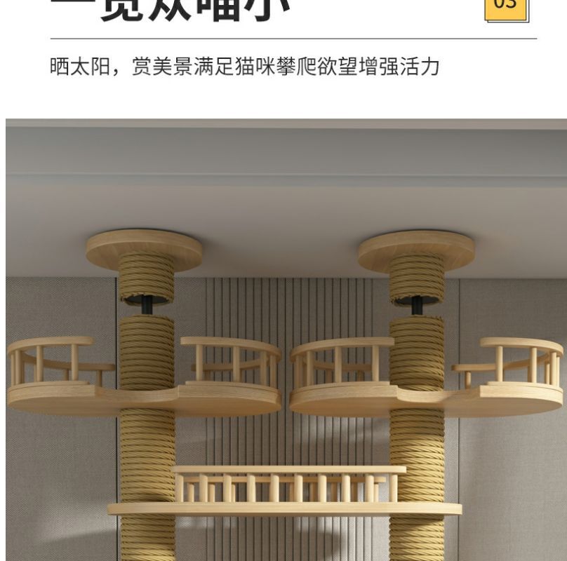 고양이 클라이밍 프레임, 천둥, 플로어 윈도우, 원목, 공간 절약형, 펀칭 없음, 이중 기둥, 대형 고양이 천장, 바닥에서 천장까지, 고양이 클라이밍 프레임, 멀티캣스토어 가기