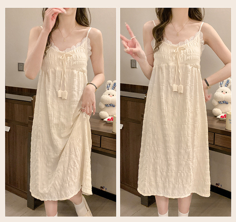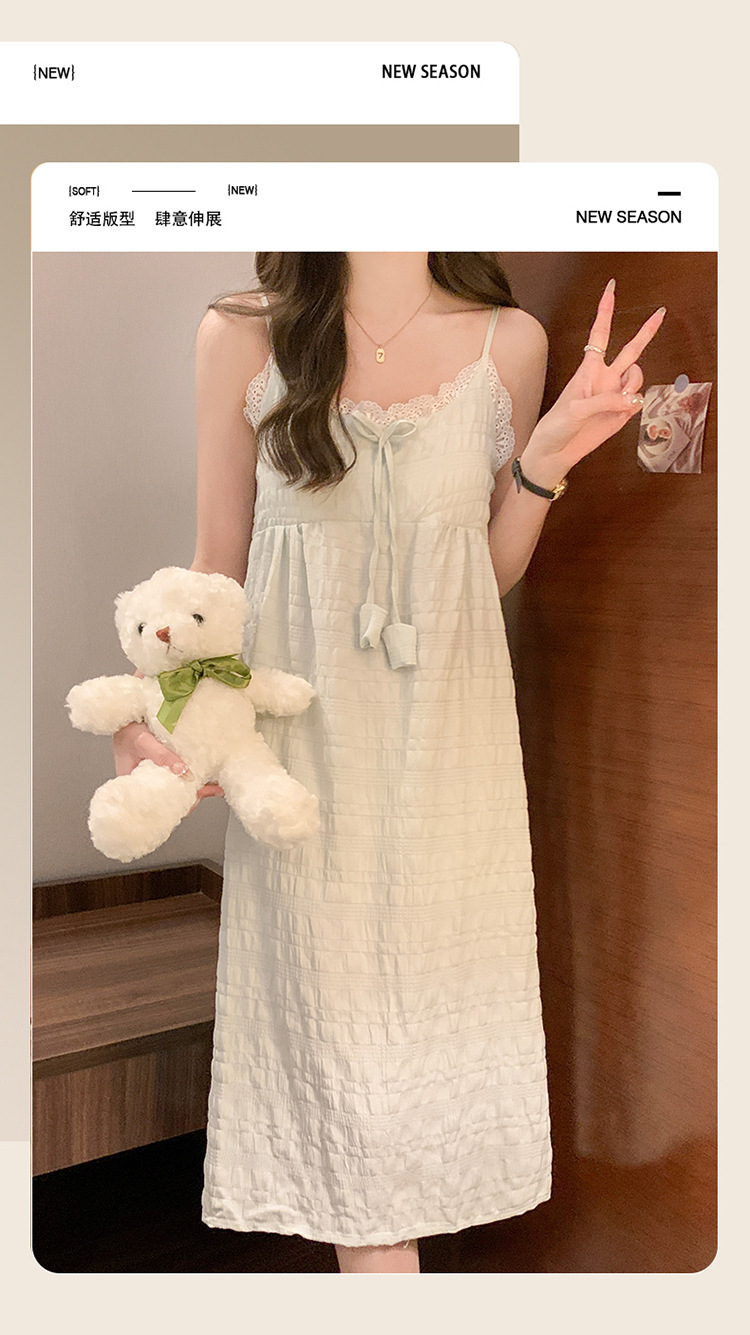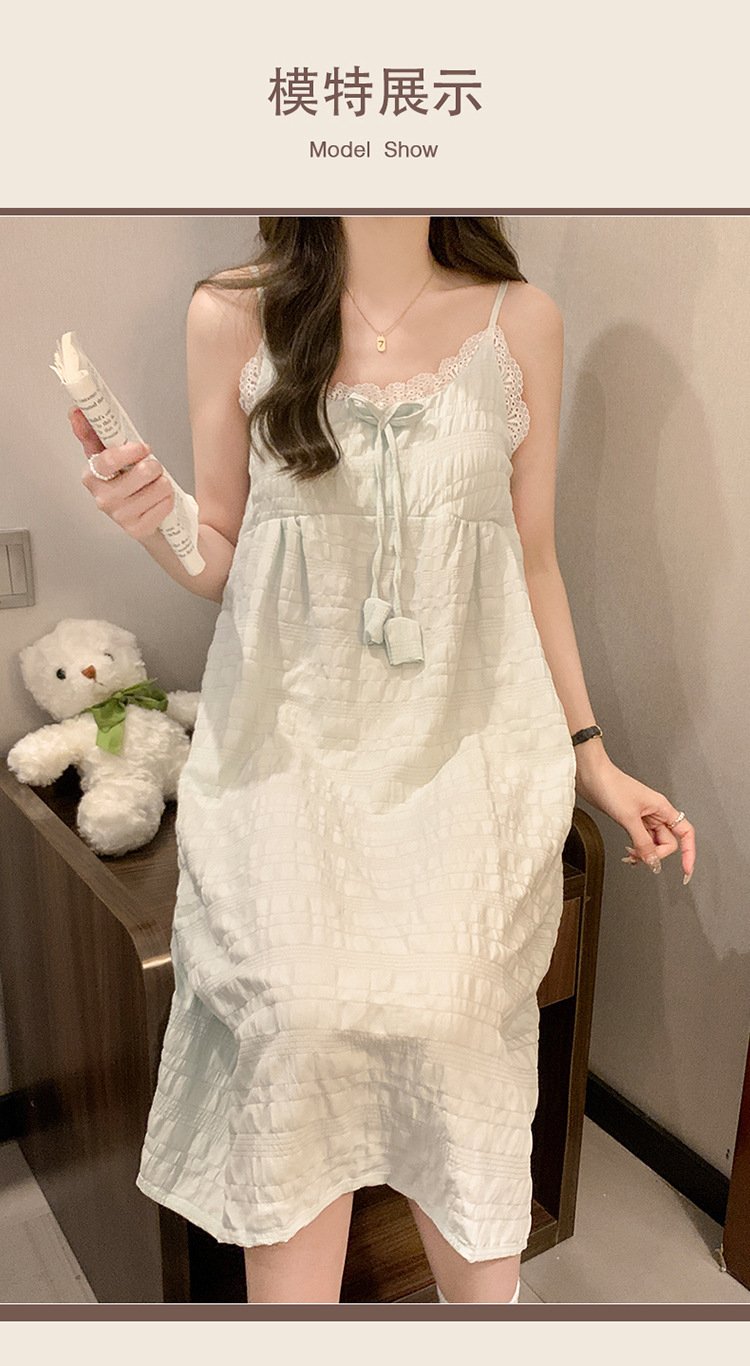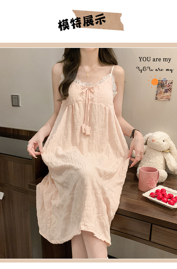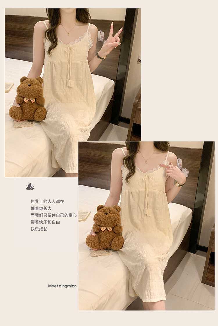 여성용 가슴 패드가있는 슬립 드레스 여름 클라우드 코튼 한국 스타일 소녀 만화 레이스 나비 잠옷 여성용 스위트 슈트스토어 가기