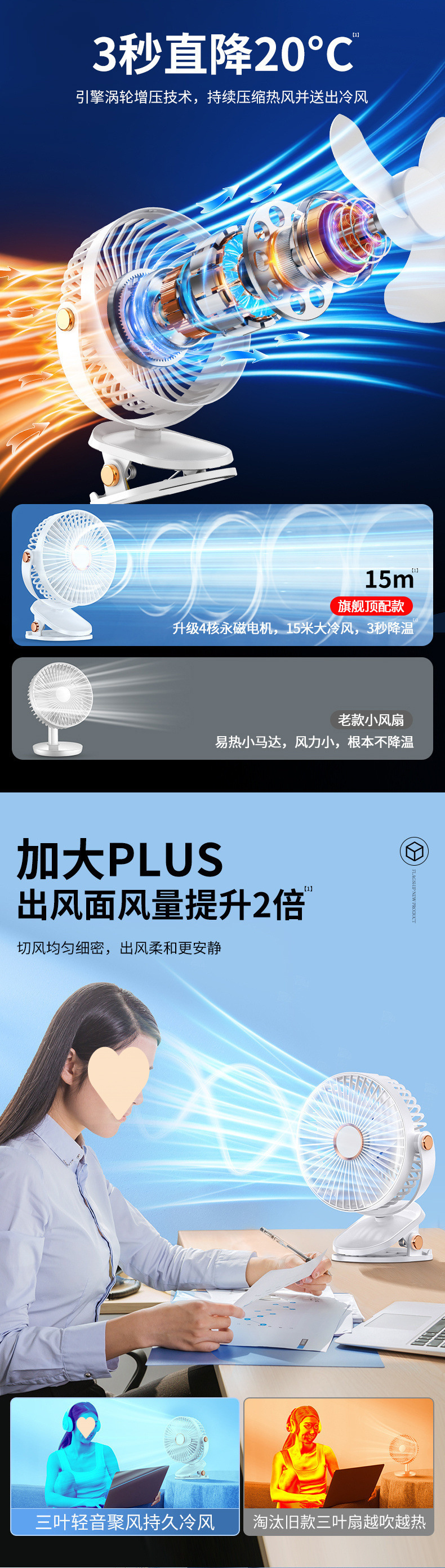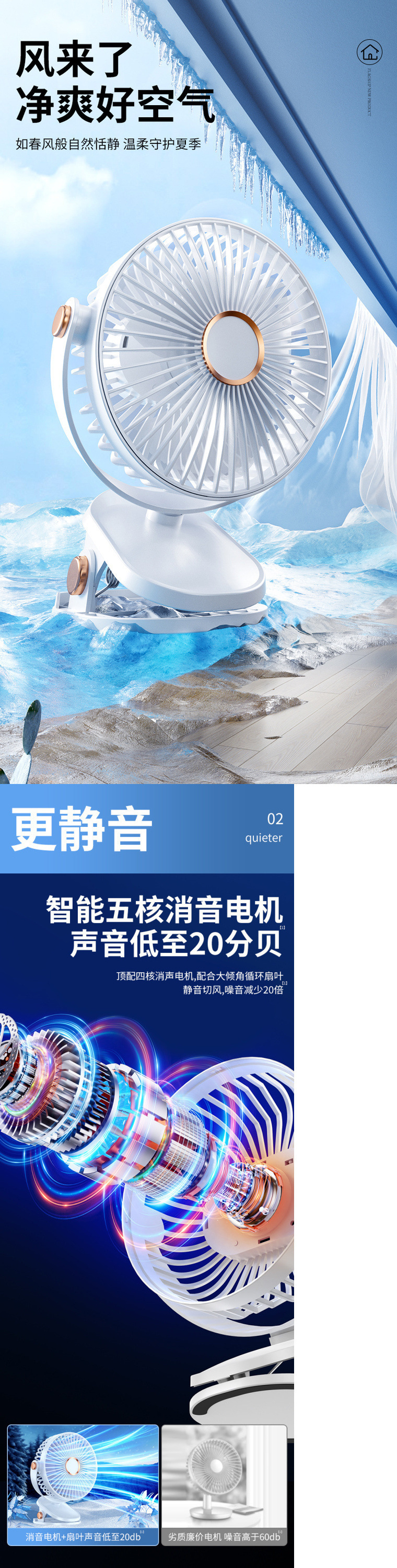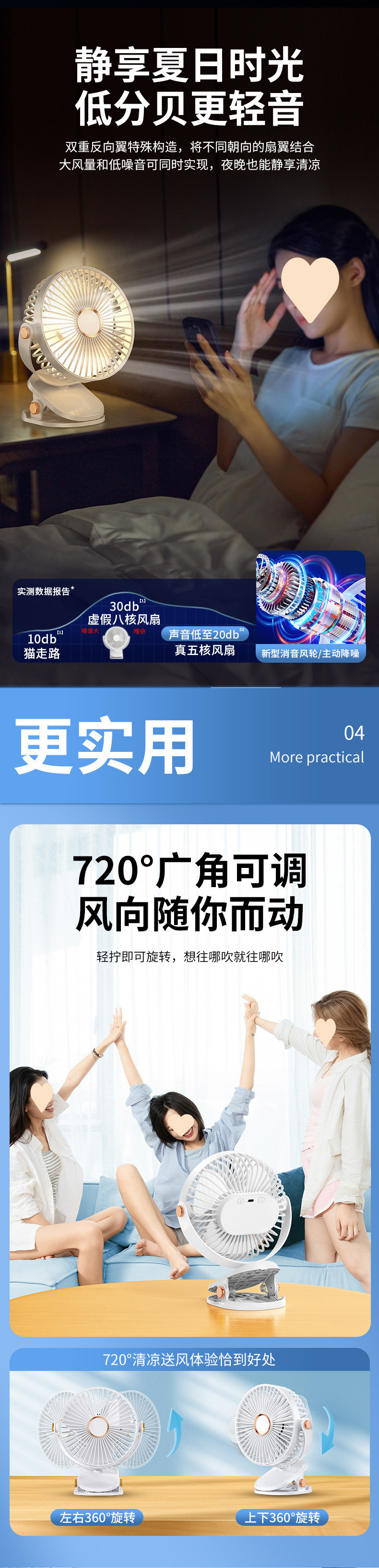 Doying 클립형 선풍기 충전식 학생 기숙사 침대 사무실 데스크탑 무음 강풍 선풍기스토어 가기