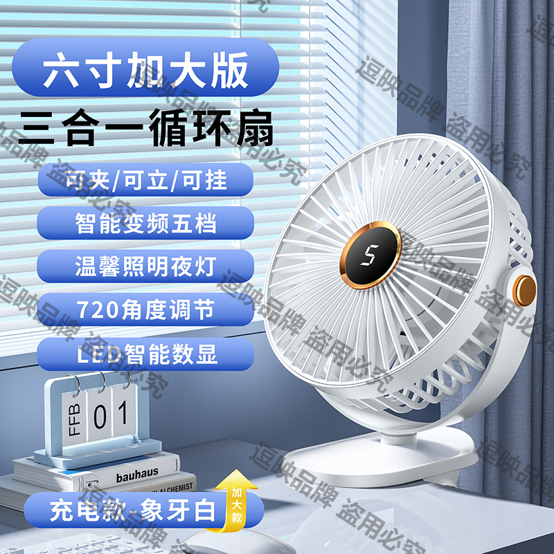 Doying 클립형 선풍기 충전식 학생 기숙사 침대 사무실 데스크탑 무음 강풍 선풍기