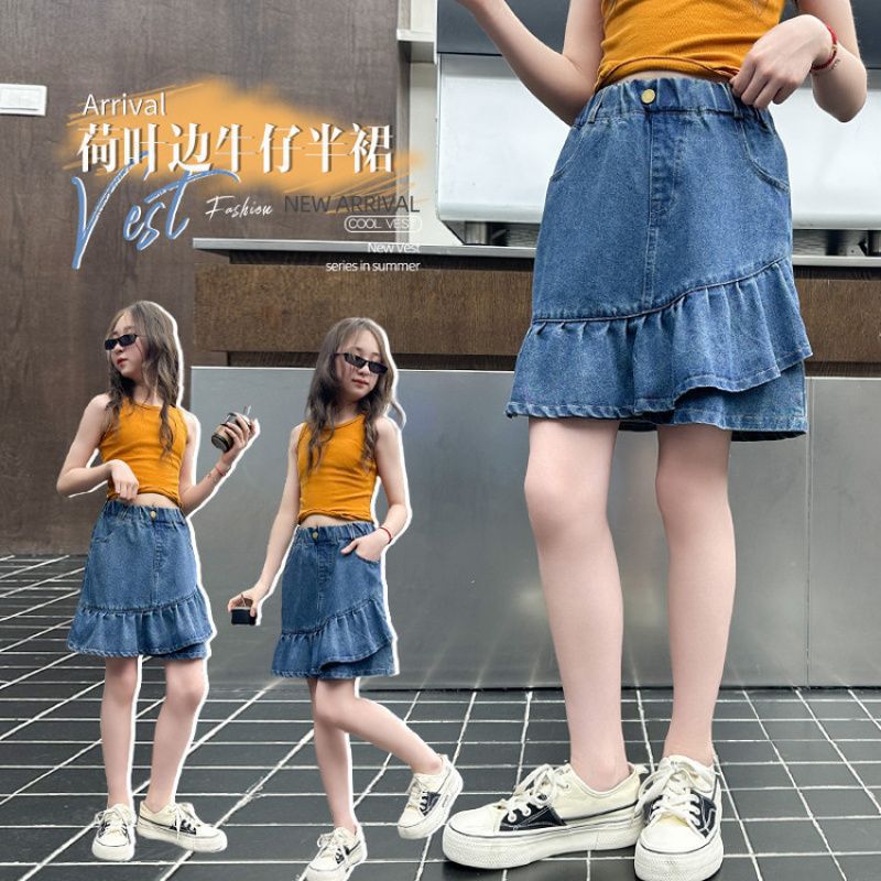 아동복 소녀 데님 스커트 여름 새로운 패션 다목적 아동 바지 프릴 스커트스토어 가기
