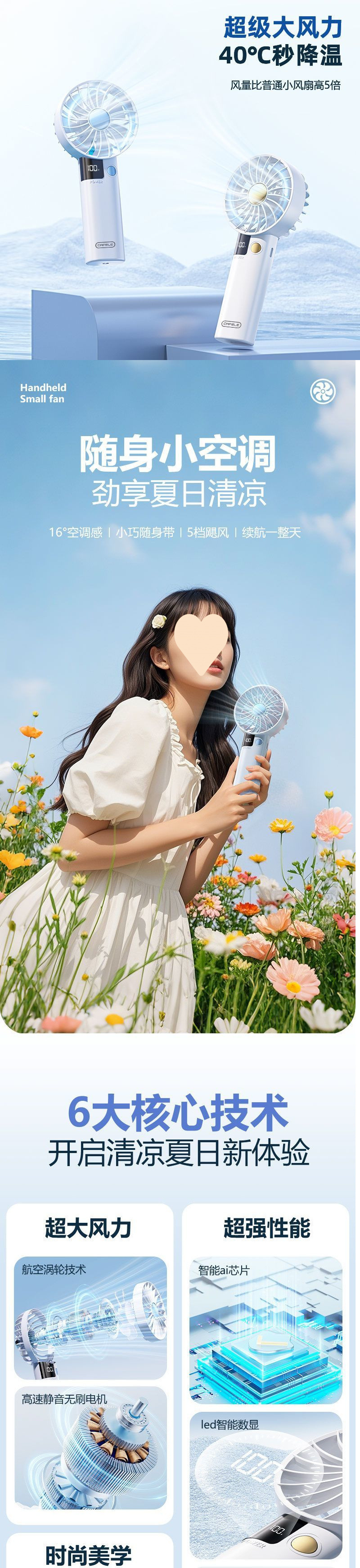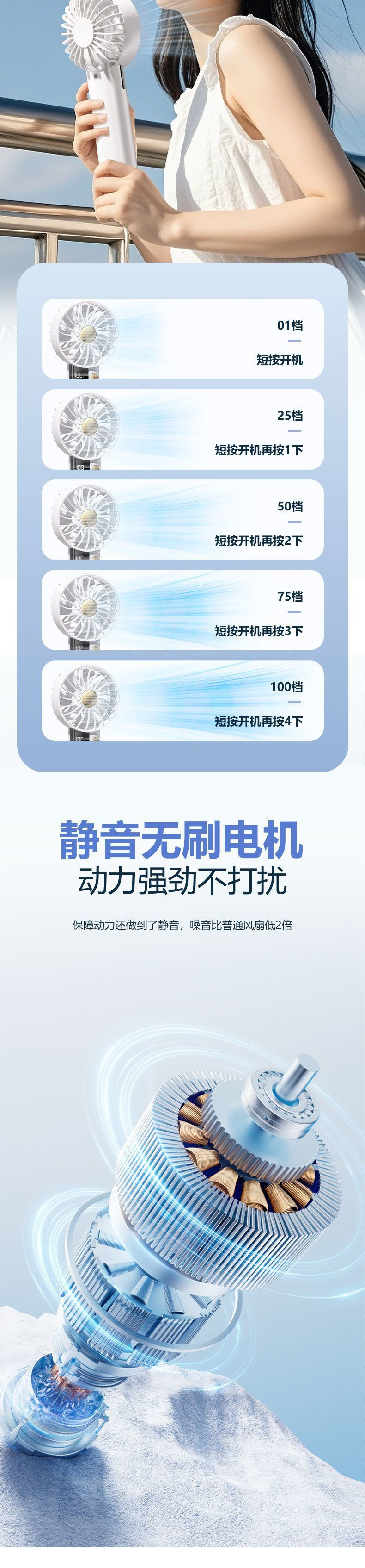 • 글레이셔 컬러 [100단계 풍력 조절 가능/저소음 브러시리스 모터]